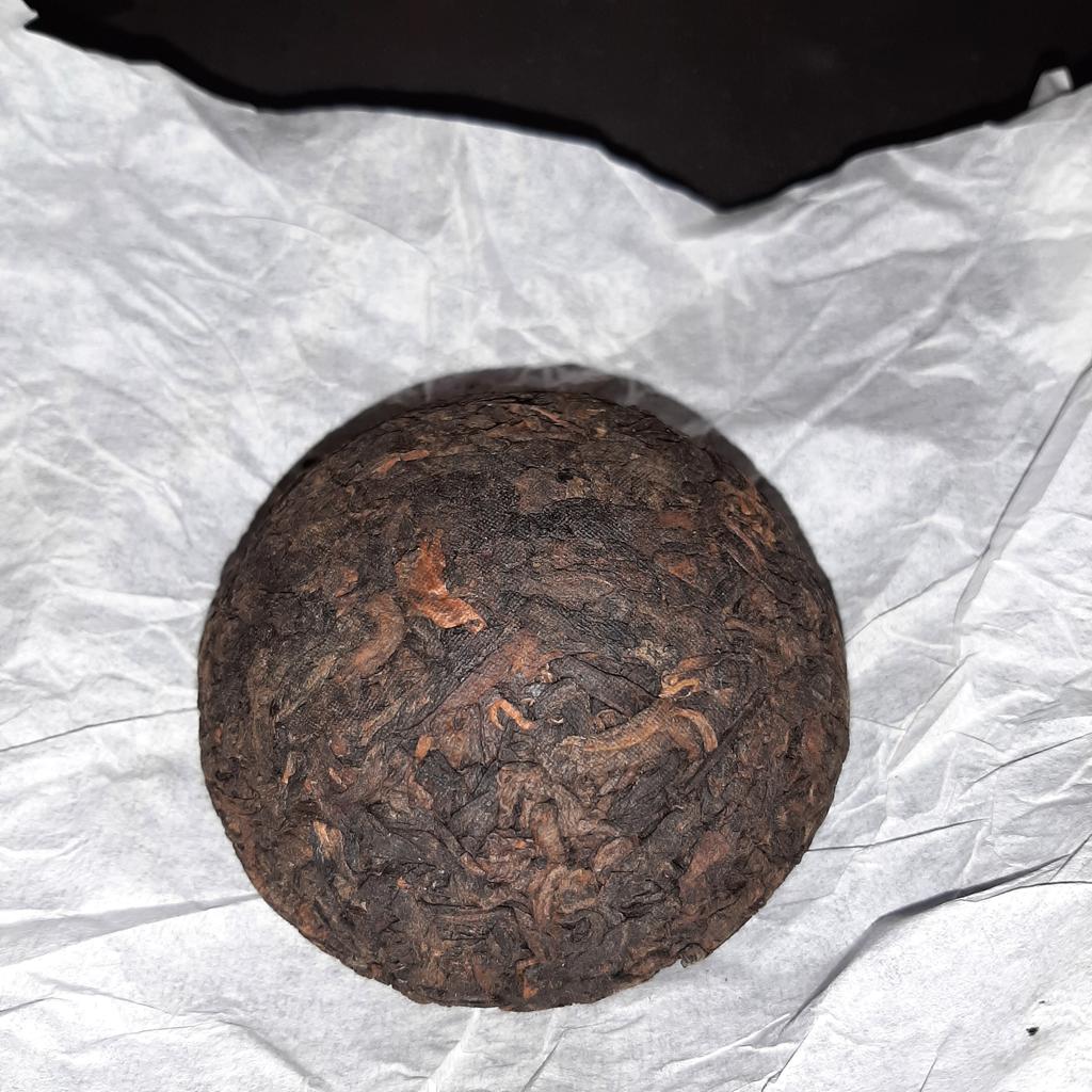 Чай шел 23.05-17.06 в Харьков. Забирала на почте, упаковка была вся потёртая, чай внутри лежал только завёрнутый в бумагу, никакой дополнительной защиты не было. Никаких данных о виде чая (шу или шен), годе сбора и т.п. нет тоже. Вес 95 гр. По запаху - пуэр, но ещё не пробовала. Внутри была наклейка с рекламой магазина. Стоимость на конец мая 2021 - 114 грн.
