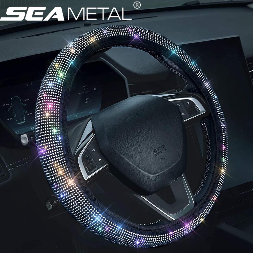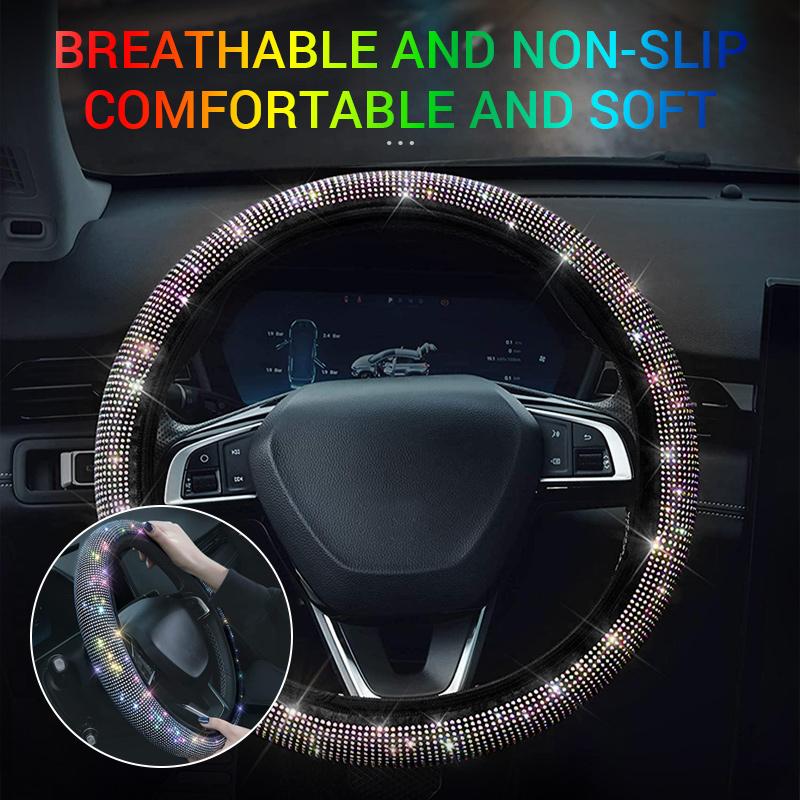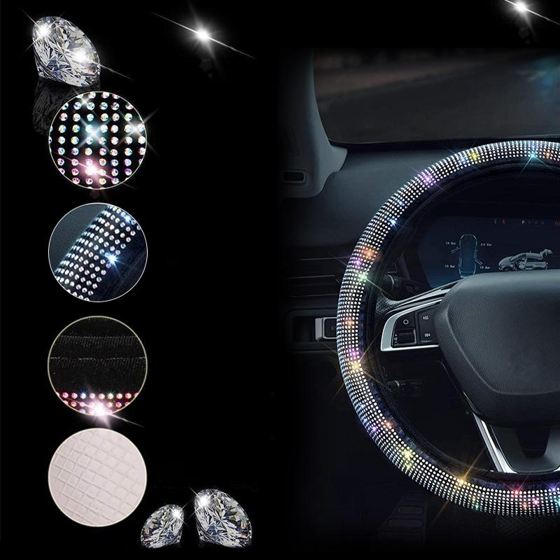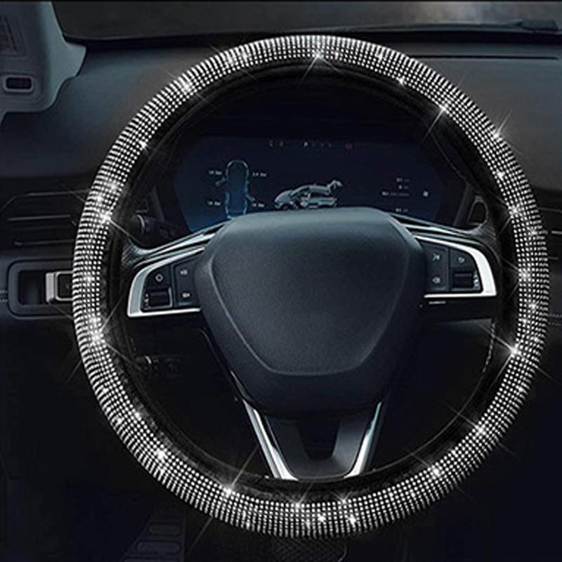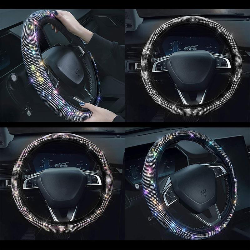 Хрустальный чехол на руль автомобиля с искусственной кожей и красивыми блестящими стразами