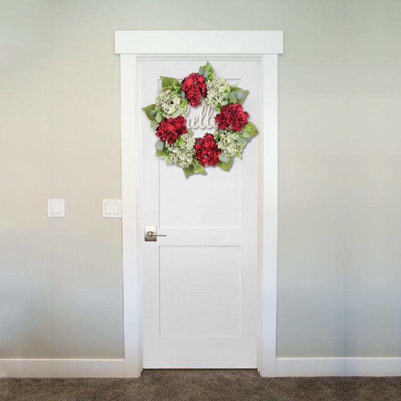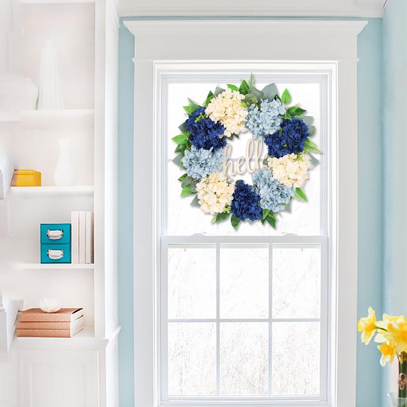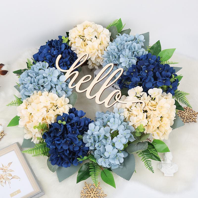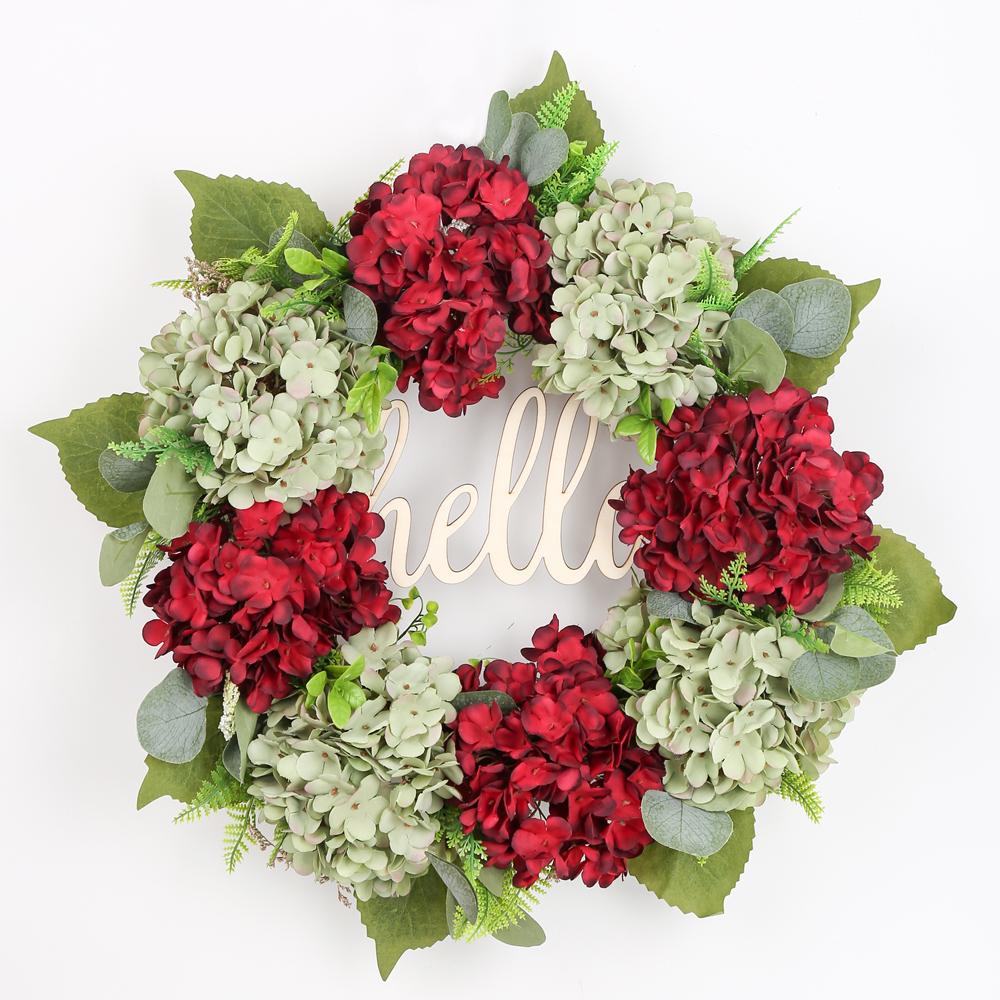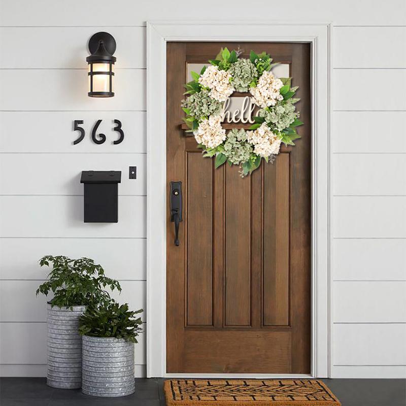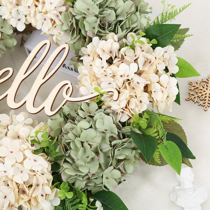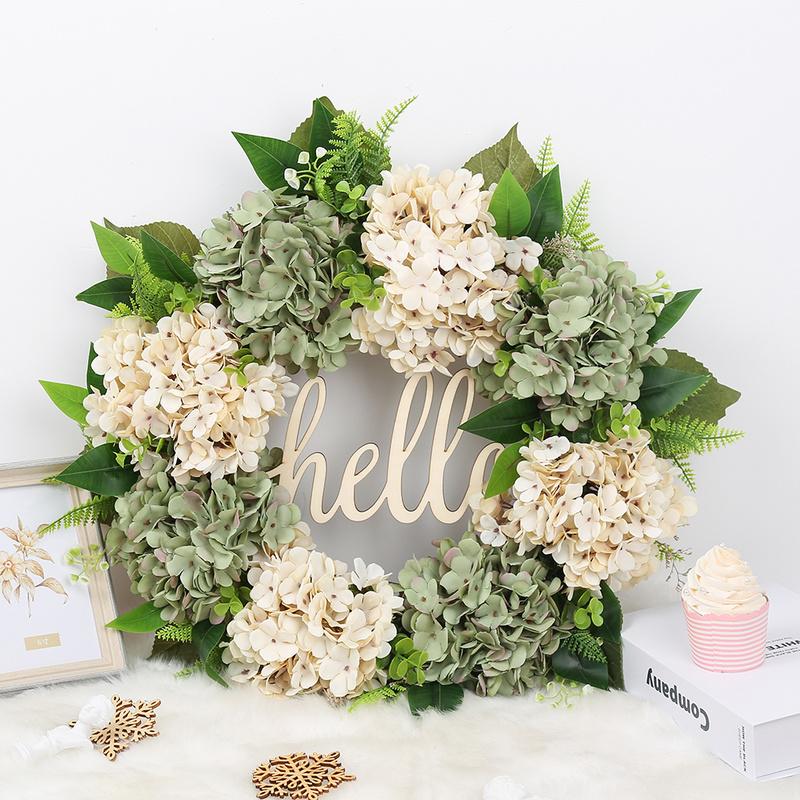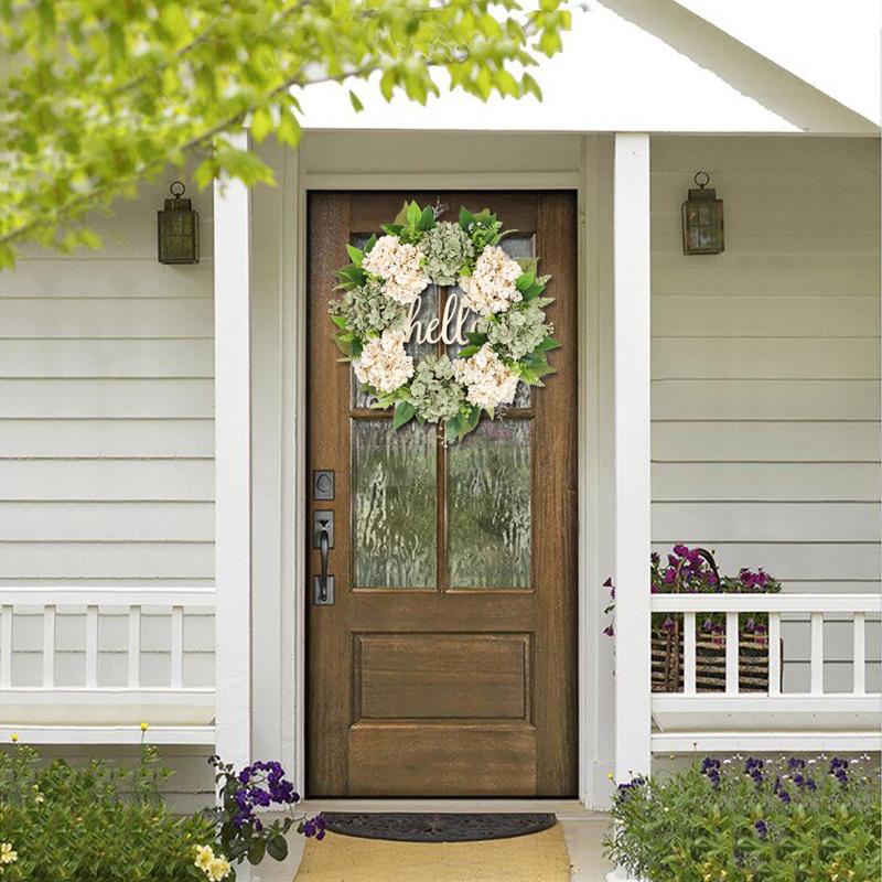 Венок на входную дверь Весенний венок 22-дюймовый венок из зеленых гортензий Летний венок Привет венок ручной работы