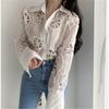 RUGOD Летняя сексуальная женская рубашка из органзы с вышивкой лепестков Spirng, качественная женская рубашка с вырезами, женские топы, модные шикарные женские блузки 2020
