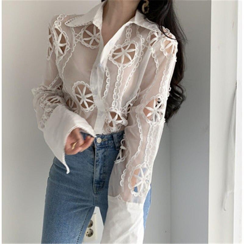 RUGOD Летняя сексуальная женская рубашка из органзы с вышивкой лепестков Spirng, качественная женская рубашка с вырезами, женские топы, модные шикарные женские блузки 2020 — купить товар онлайн с бесплатной доставкой до всему миру!