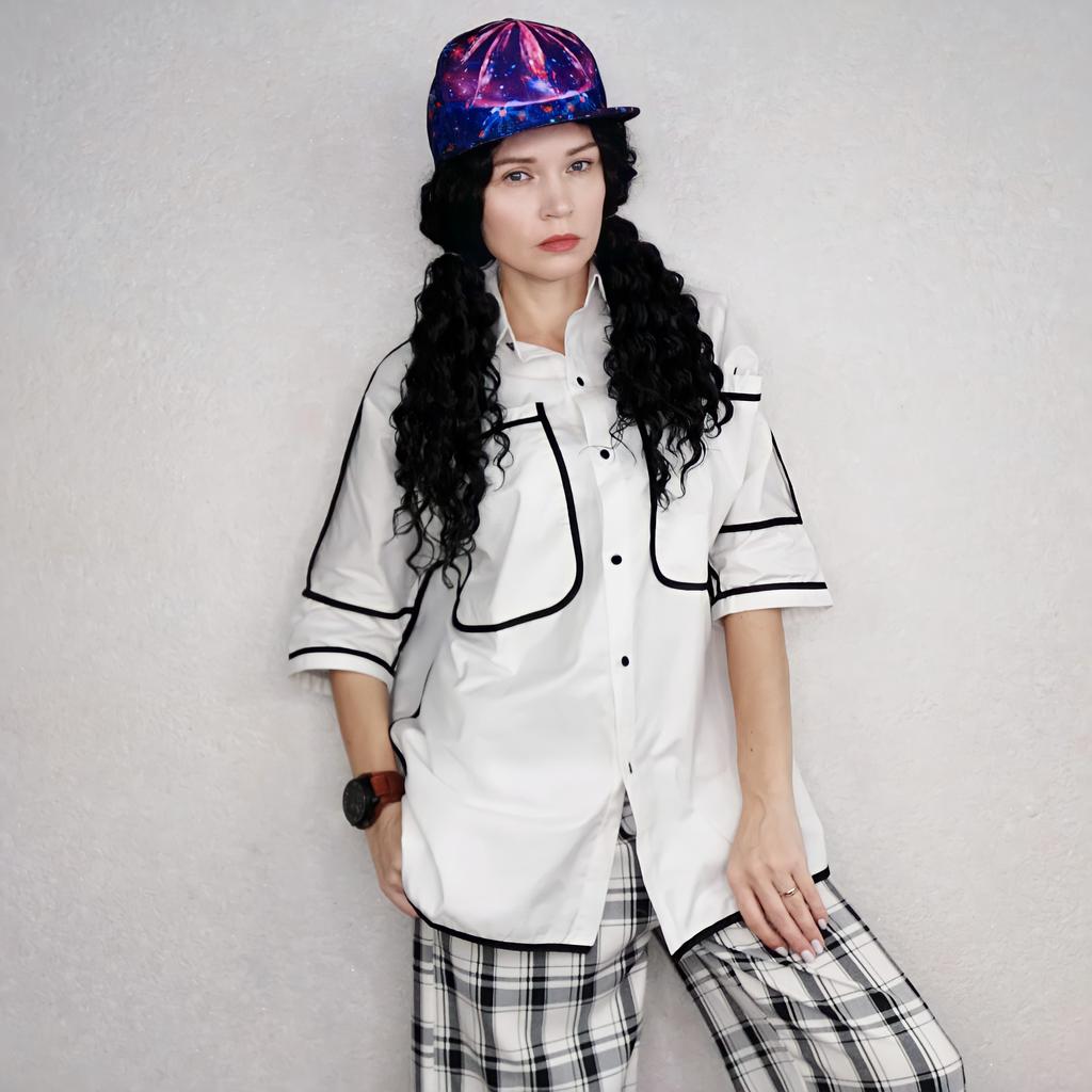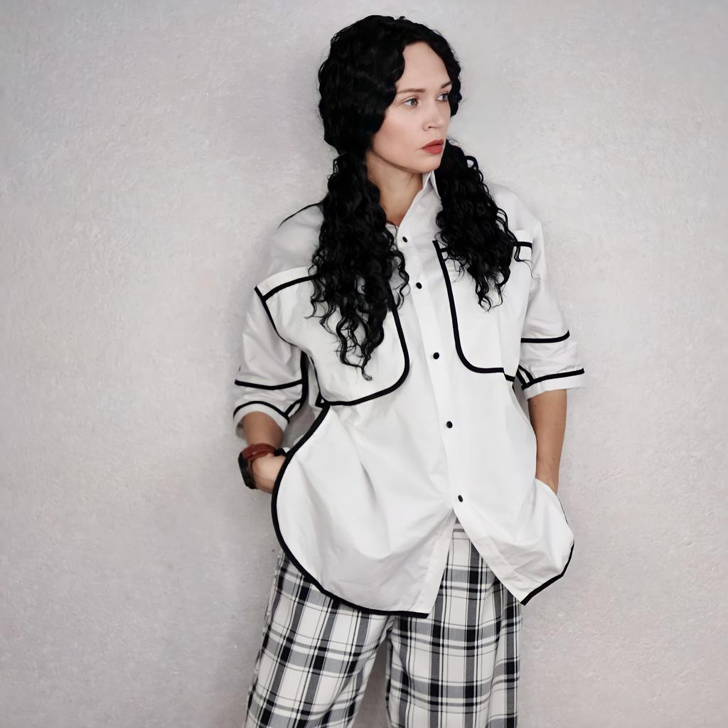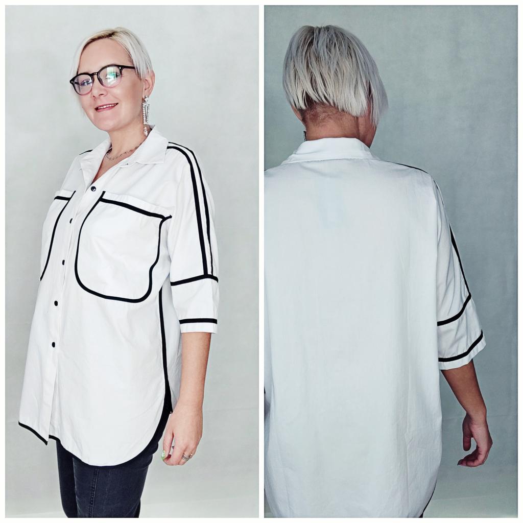Сложный чёрно- белый от DIMANAF 😍. Рубашка интересного дизайна с накладными карманами. Действительно яркая и стильная. Белоснежный цвет с кантрастной черной оторочкой. Черные лампасы выпуклые, расположены по периметру всей рубашки: на рукавах, карманах и боках. Карманы объёмные. Рукава цельнокройные, по типу "летучая мышь". Материал плотный хлопок, с небольшой долей полиэстера. В описании значится полиэстер, и этого не может быть, потому как и визуально, и тактильно ткань натуральная. Мнется, как и положено хлопку. Модель оверсайз, и чем свободнее сядет рубашка, тем лучше. И носить ее можно как кардиган: с брюками, юбками и платьями. Размерный ряд М-2xl. На мне L. Замеры: ОГ 122. Длина 80. Ширина рукава в узкой части 34. Мой рост 167, параметры 98-84-100. Вещь смелая, неординарная, на любителя. Пошив фабричный, есть бирки и этикетки. Пакет фирменный. Конечно, рекомендую, а как же иначе?
