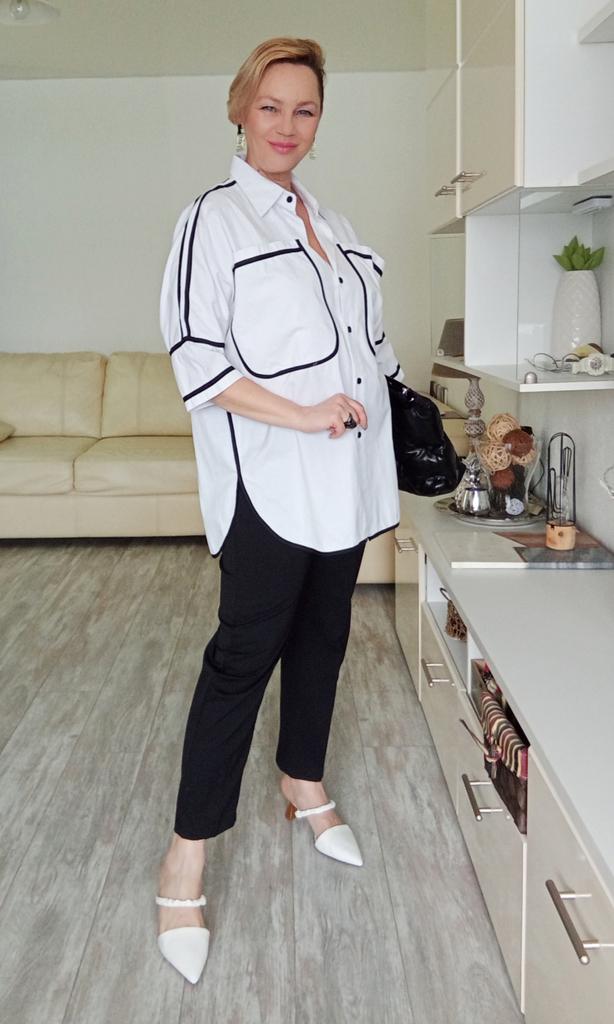 Black 🖤 and white 🐻❄️ Больше обзоров, промокоды, подарки и закрытые распродажи в моем телеграм канале. Жми лупу 🧐🔎, вводи @Наталья_Великая . Меня можно найти также через браузер. Если не можешь найти, пиши ВК, ссылка в шапке профиля. Стильная рубашка- оверсайз с контрастным кантом. Эту рубашку я уже заказывала, можно найти мой отзыв. Прошло полтора года, что изменилось? Ткань. И, имхо, в лучшую сторону. Хлопок теперь мягкий, и его легко гладить. В остальном, все без изменений. Накладные карманы Рукав летучая мышь Без выточек Силуэт прямой Черный рант. Мой рост 167, параметры 98-84-100. На мне размер L. Замеры: ОГ 122 Длина рукава от ворота 51,5 Длина 77 Ширина рукава 34. Вещь стильная заметная. Материал натуральный. Рекомендую .