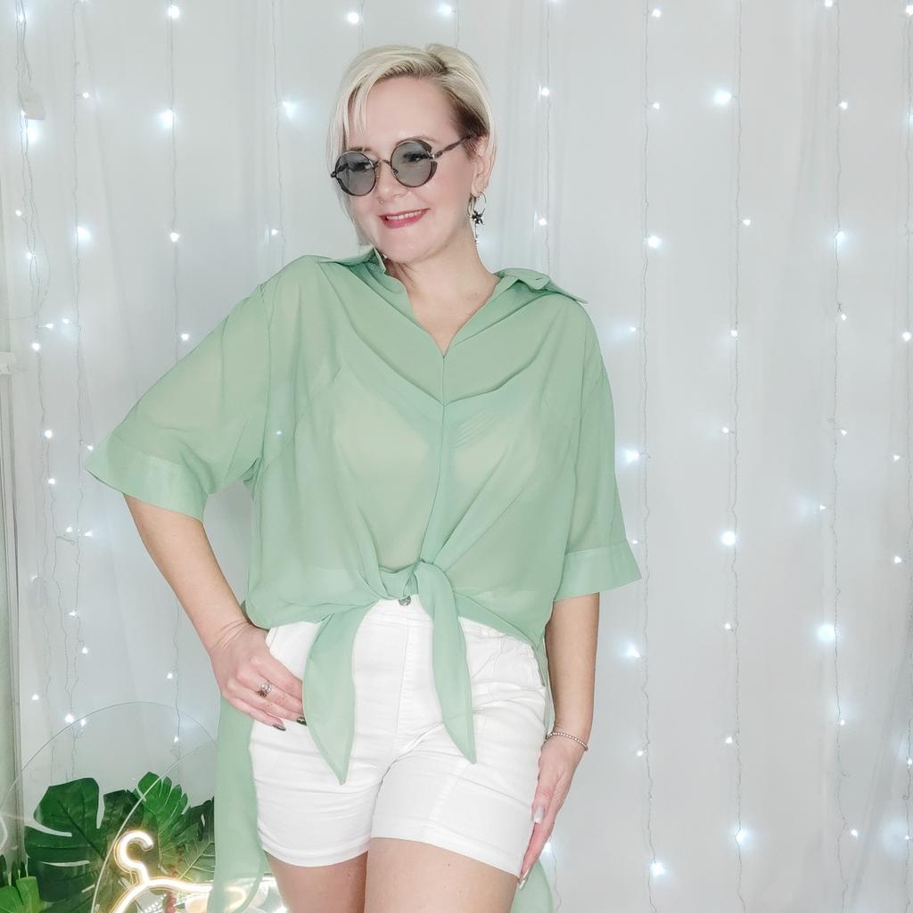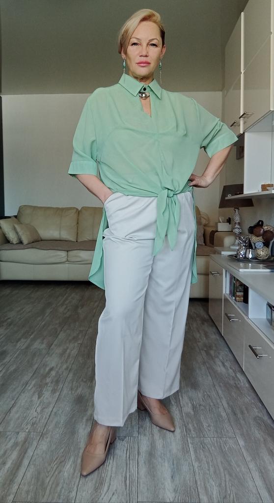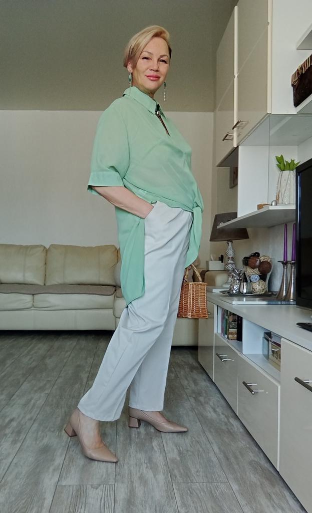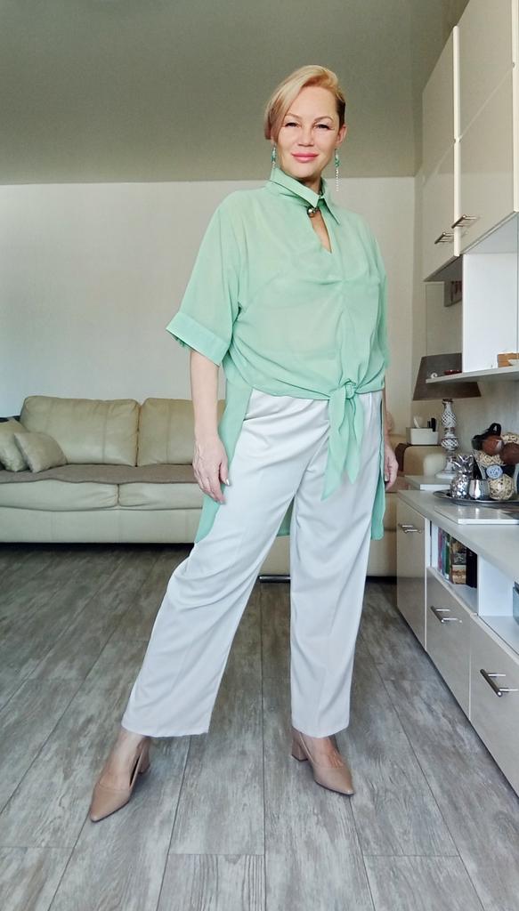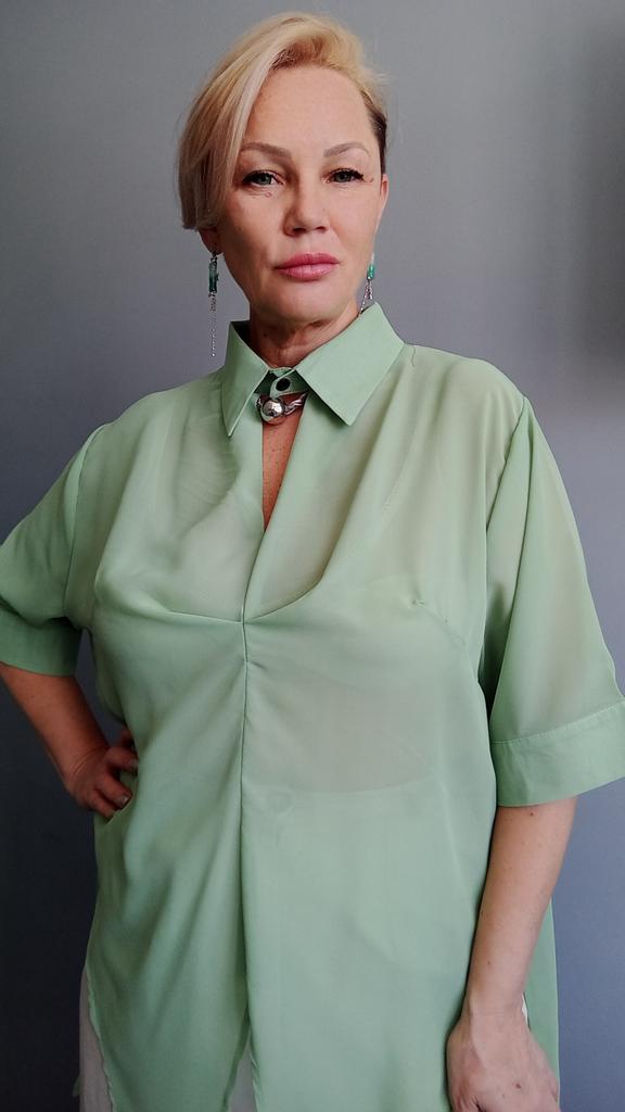 Мятная блузка - туника! Привет! Красивые, ассетричные, оригинальные вещи на лето - это тот что надо для того что бы выглядеть стильно и необычно 😍 ‼️добавила разговорное видео, там больше деталей‼️ Ткань: Шифон, не стрейч с полупрозрачным эффектом. Дизайн: Свободная туника с оригинальной пуговицей застежкой у воротника. Плечи спущены, рукава свободные тут есть две функциональные пуговицы на манжете. В районе груди ткань имеет интернетный напуск ткани. Подол ассеметричный спереди два треугольника позволяют Вам завязать тунику по типу рубашки. Нюансы: Для себя не нашла. Качество: Вопросов нет, сшито все замечательно! Цвет: Мятный Сезон: Лето Размер: На мне единый размер. Мои параметры: рост 172 см 98/76/106 см Детали: Длина 86/91 см Плечи 48 см Длина рукава 32 см ОГ 128 см ОТ 126 см ОБ 144 см Резюмирую: Очаровательная вещь! Очень освежает образ делая его уникальным и интересным! Рекомендую! Берем! Я не прощаюсь, Miss_Kuksik Мятная_туника Ассеметричная_рубашка Ассиметрия