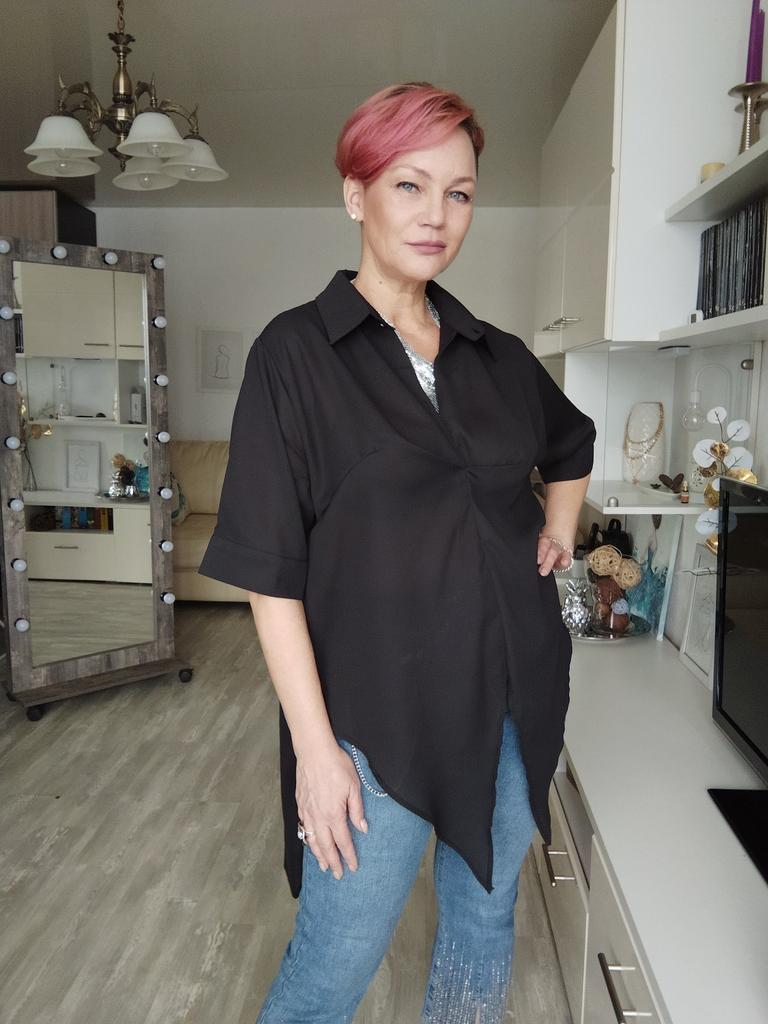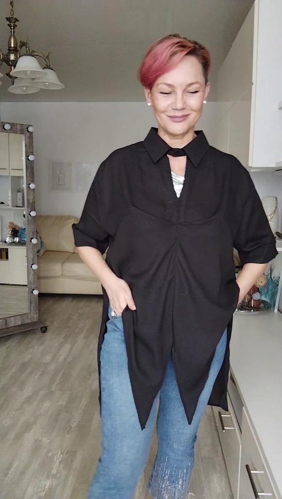 Замечательная шифоновая блуза- фрак. У продавца два цвета- есть ещё яркий, позитивный оранжевый. Но мне нужен был именно черный, чтобы сложился образ с потрясающими джинсами, которые сейчас на мне. Я безумно хотела их купить, но понимала, что они стрейч, и все недостатки фигуры будут видны, поэтому искала блузу, которая скроет все безобразия). И я нашла. Идеальную блузу, строгую, элегантную, которая отлично скроет то, что в этом нуждается. Это совсем не значит, что блузу не могут носить красотки с идеальными фигурами. Отнюдь. Она подойдёт всем. Единый размер. Замеры. ОГ 134 Плечи 47 Длина 90 Длина рукава 30 Ширина рукава 38 Материал лёгкий, приятный, полупрозрачный. Не тянется , слегка мнется. Скорее всего, синтетика. Возможно, с добавлением натурального волокна. Ворот рубашечный, с застёжкой. На рукавах манжеты и пуговки. Есть выточки. В районе груди складка, маскирующая объем груди. Если хвосты завязать на животе, получится фрак. На спинке складка, как у рубашек. Мой рост 167, параметры 98-85-100. Свободно, как и хотела. Пошив фабричный. Есть этикетка с названием бренда. Этикеток с составом и размером нет. Рекомендую. Отличная блуза.