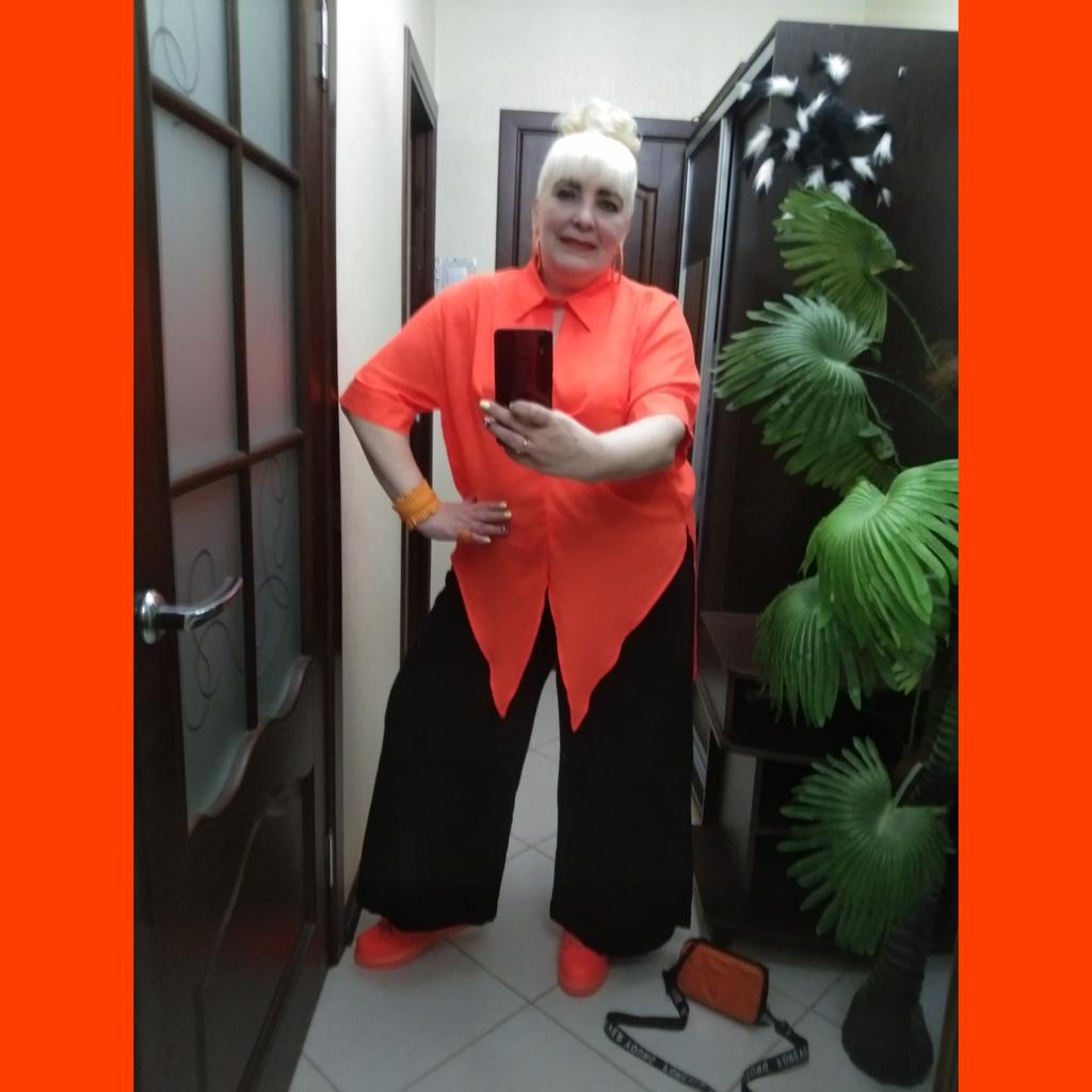 🧡 ОРАНЖЕВАЯ БЛУЗА-ФРАК С УДЛИНЕННЫМ ЗАДНИМ ПОДОЛОМ И АСИММЕТРИЧНЫМ ПЕРЕДОМ 🧡 👉Жми на СЛАЙД ШОУ! Очень экстравагантная вещь! Эффектная, безумно стильная, элегантная блуза, которая напоминает фрак благодаря заднему удлинённому подолу. Передние полочки у нее имеют вытянутую треугольную форму. Их можно завязать ещё и на узел. А задняя часть прямая и удлиненная. Блуза свободного кроя, воротник сделан как у рубашки и застёгивается только на одну пуговицу. Спереди есть складка, которая красиво задрапирована. В районе груди присутствуют две выточки. На спинке имеется кокетка, от которой тоже идёт расширяющаяся складка. Рукав короткий, с манжетами и пуговицами. Ткань лёгкая, полупрозрачная, по ощущениям напоминает шифон. Размер у блузы единый. ОГ составляет 134 см, длина блузы 90 см, длина рукава 30 см, плечи 47 см. На мои параметры 110-95-118 см блуза села свободно. В ней комфортно. Она не стесняет движений и маскирует недостатки фигуры. Пошив фабричный, претензий нет. Потрясающая вещь, которая несомненно сделает образ неповторимым и особенным! 🎼🎵🎶В слайд шоу использована композиция "Sky" в исполнении Sonique.