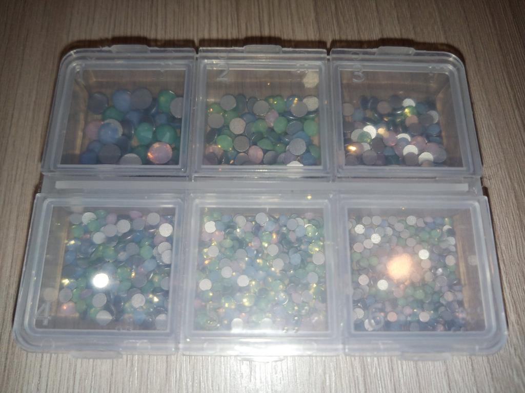 LZ04 MIX OPAL - стеклянные стразы микс из розового, зелёного и голубоватого цветов типа опал в коробочке со снимающейся крышечкой, каждый отсек защелкивается. Отлично сверкают! Количество не считала. По виду розовых кажется меньше. Я довольна! Спасибо! ♥️