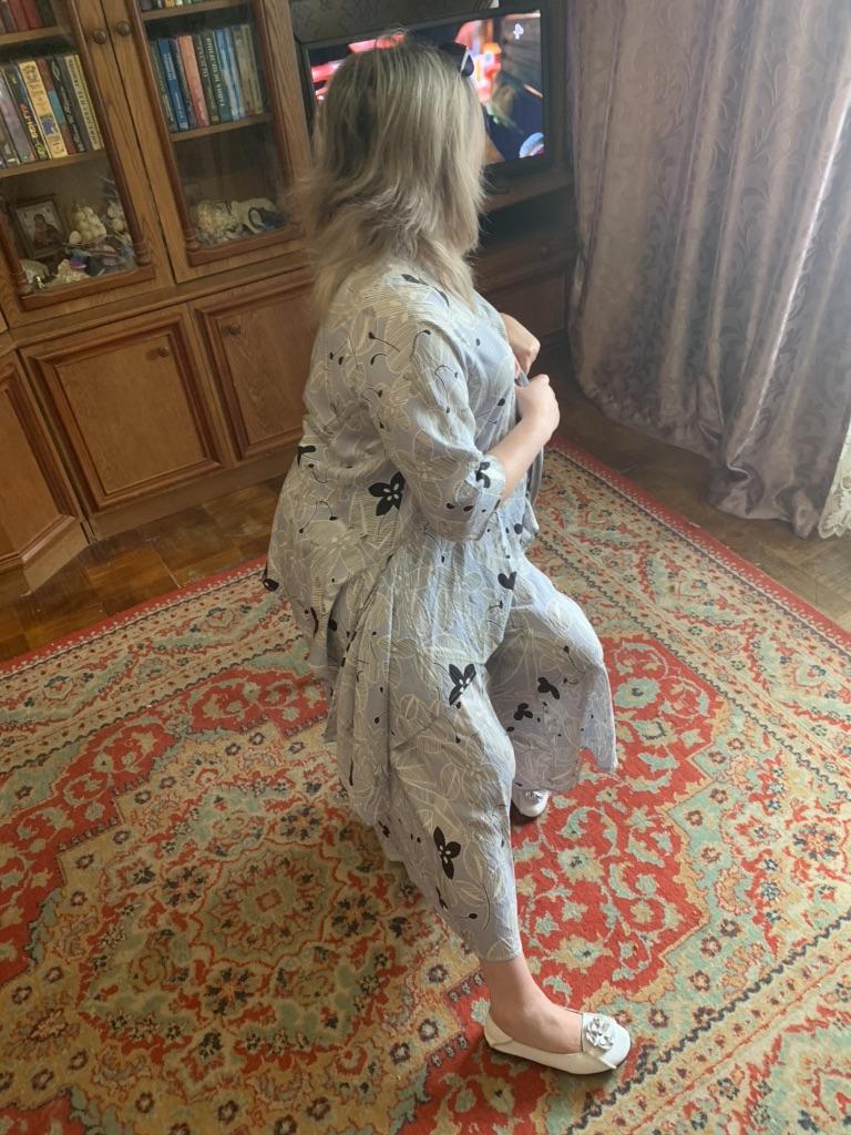 Ткань костюма очень приличная , сильно мнётся , напоминает хлопок , холодящий… Пошив у костюма очень аккуратный. Я ношу летом 48 р-р… осенью и зимой больше 50 - 52… поэтому я перешла на размер Overseas 😁 постаралась собрать уже все разновидности этого кроя , у этого костюма… вид у этого костюма очень суперский🤟🏼 верх от костюма можно надевать под любые брюки , джинсы , лосины и будет смотреться обалденно👍🏻 просто у меня юбок нет, я не знаю может быть и с юбками будет красиво смотреться… магазин DIMANAF 😻 и всем своим знакомым рекомендую❗️На женщине любой комплектации , до 56-го размера эти костюмы будут смотреться на каждой, по своему классно🤟🏼 просто из-за повышения доллара, опять значительно подскочили цены❗️ а во всем остальном спасибо Joom ❗️Всем удачных покупок 🛍️🍀🍀❗️❗️❤️