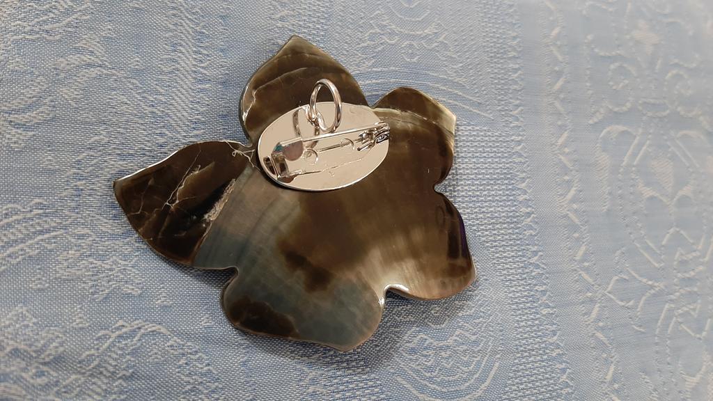 Спасибо большое. Брошь пришла вместе с другими товарами в одной посылке. Она очень красивая и качественная.. Перламутр переливается, она скорее не белая а серая переливающаяся. Мне очень понравилась. Рекомендую.