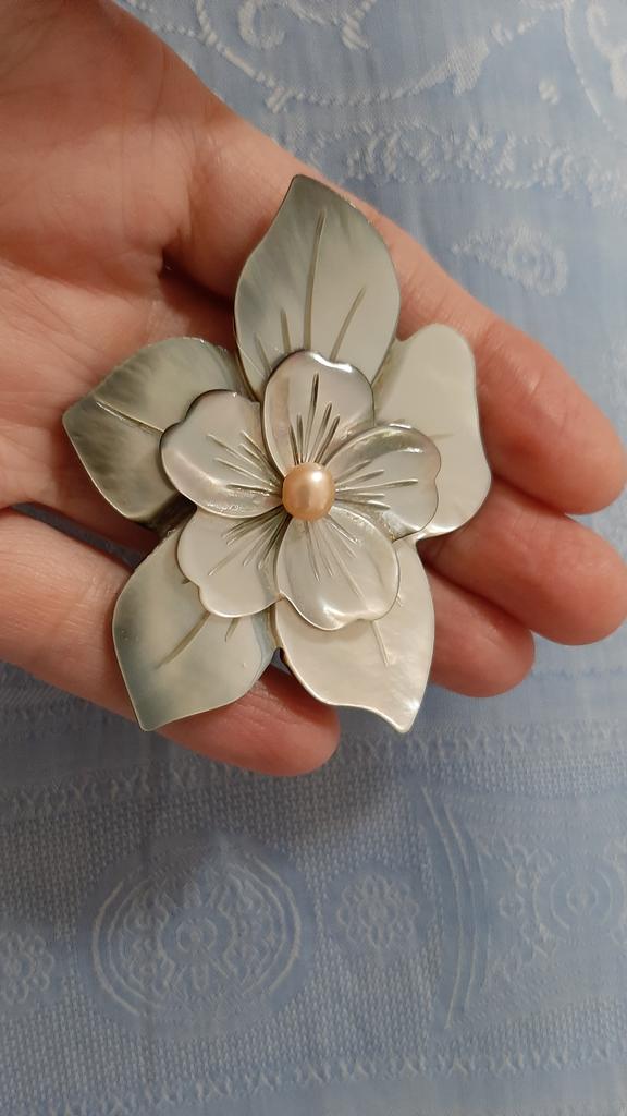 Сама по себе брошка замечательная. С ней все в порядке, но сказать, что товар соответствует описанию продавца, будет преувеличением. На фото она ярко белая, переливающаяся, именно перламутровая, как и должна быть, а в действительности темная. Если это кому-то не принципиально, то и хорошо. Мне было важно, чтоб она была именно перламутровая , светлая, белая... Но как есть. На моем фото определённо заметно, что по факту она грязно-серого цвета, к сожалению. В качестве плюса замечу, что сзади есть и кольцо, не только застежка, как у брошки. То есть можно носить, как кулон. Если вы не привередлмвы, берите. В противном случае - воздержитесь. Это черный перламутр в натуре-))