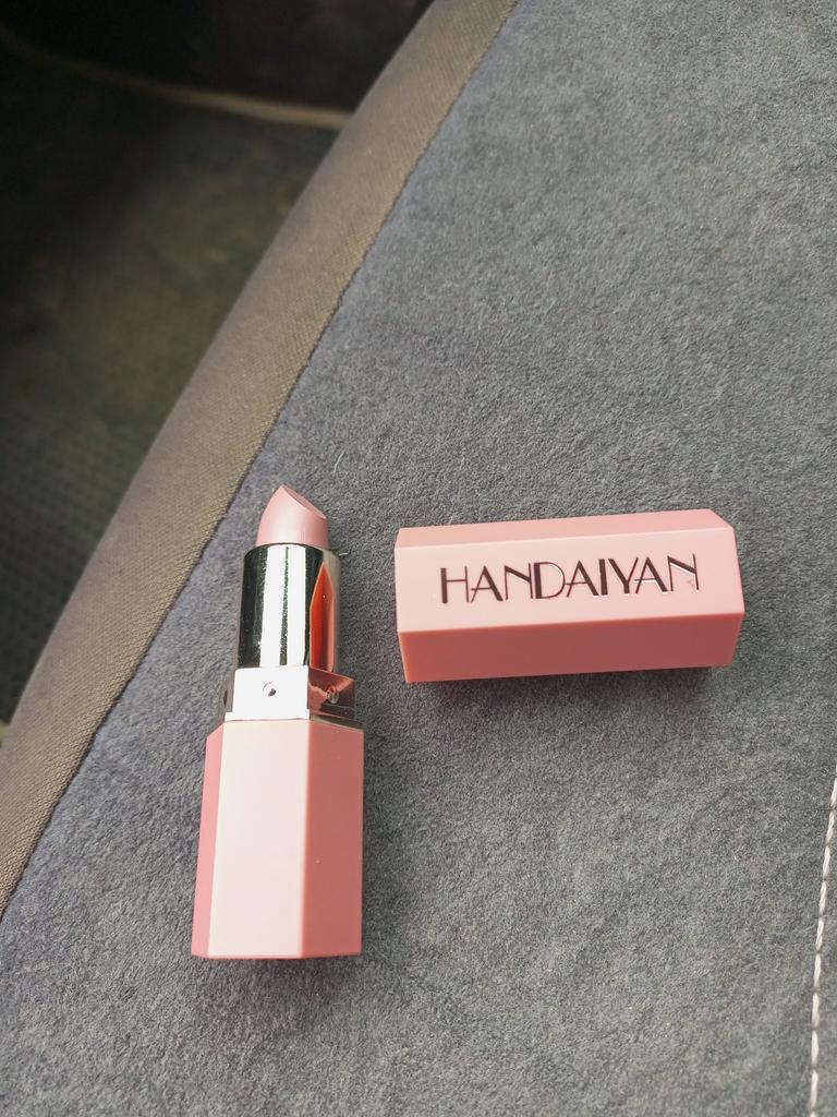Губная помада от проверенного бренда HANDAIYAN .💯🔥 Тон 01 Помада матовая.Имеет спокойный розовый тон.🤗 Мягкая, плотная текстура, приятный лёгкий запах. Хорошо 😊👍 и ровно ложится на губах,не скатывается, не сушит губы,не липкая, держится долго.👍💯 Качеством этого бренда я была довольна всегда,ведь такую помаду беру не в первый раз. При открытии помады полностью, обнаружила, что она сидит неплотно и может легко сломаться.Мне немного не повезло в этот раз.🥲 Обидно,но пользоваться все равно буду,пока будет такая возможность.😊 Мне такая некачественная помада пришла впервые,Вам обязательно повезет, поэтому рекомендую 🤗 к покупке.