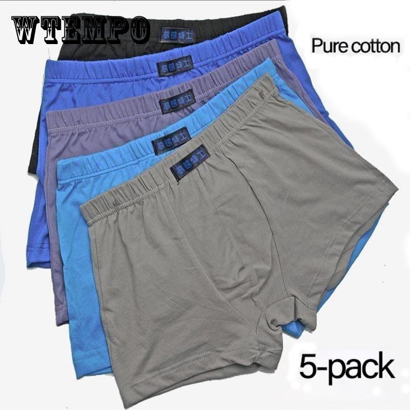 Мужские хлопковые боксеры из 5 упаковок, дышащее однотонное нижнее белье с четырьмя углами, хлопковое нижнее белье, впитывающие пот, сексуальные свободные нижние брюки