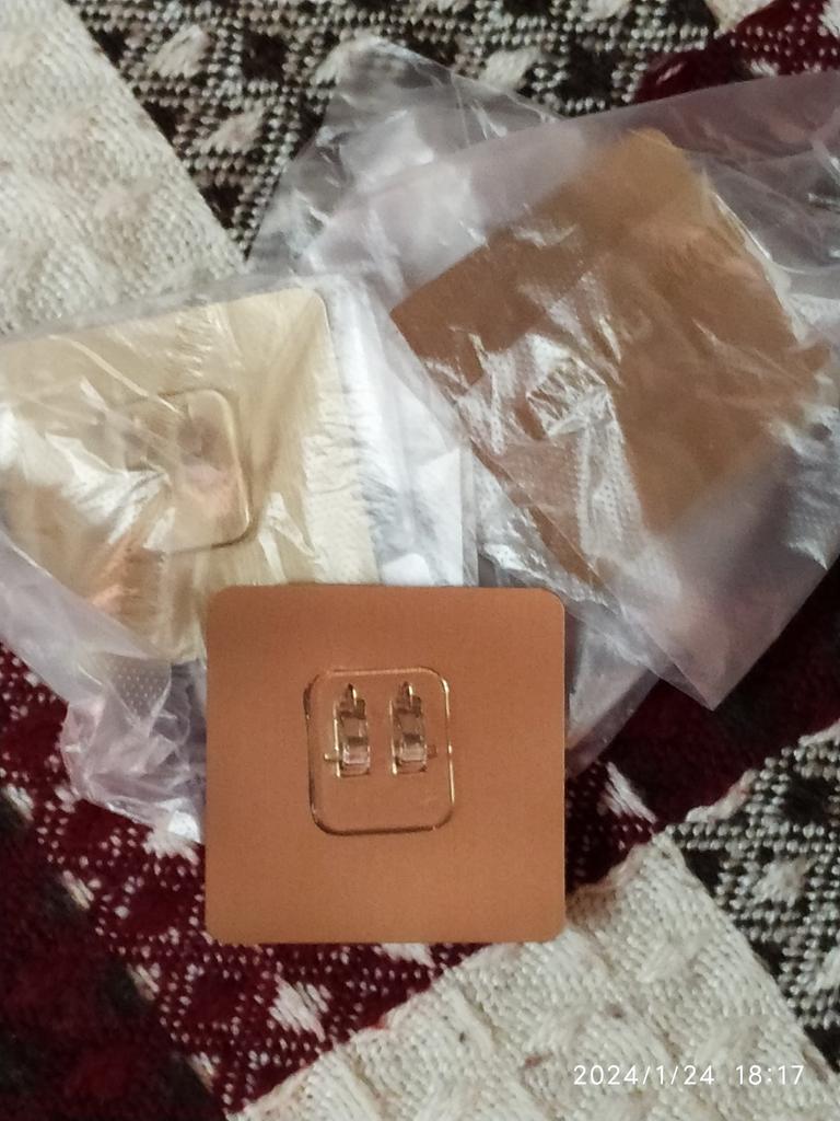 Хорошие настенные самоклеющиеся крючки. В заказе все 4 крючка как и заявлено у продавца. Клеющаяся основа у всех ровная, не мятая. На похожих крючках в ванной висит мыльница уже больше 2-х лет и держится отлично. Главное клеить на подготовленную, обезжиренную основу.