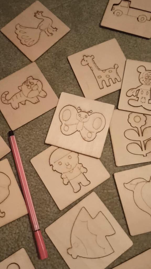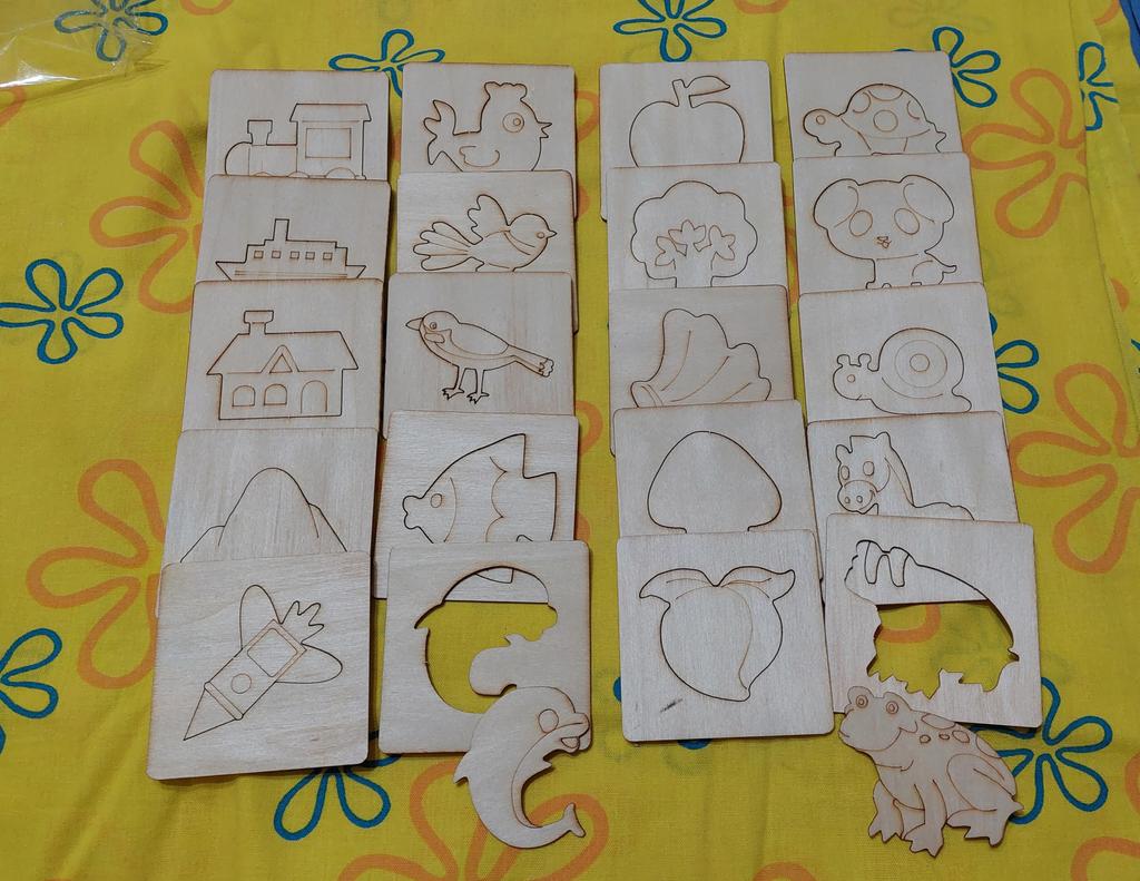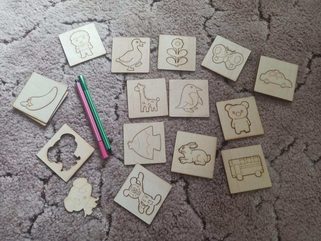 Интересные трафареты из фанеры. Немного тонковаты. Несколько картинок, вообще не понятные. Не очень нравится то, что если вынул серединку, она уже плохо держится. Хотя ребёнок доволен. В принципе, брать можно. Доставка быстрая.