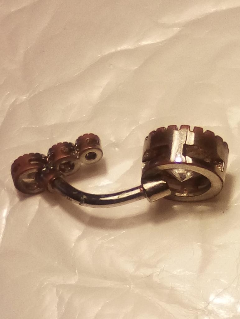Серёжка просто клас Меняю отзыв так как через короткий промежуток времени серёжка не пригодна к использованию!!!! Всё окислилась!! И к тому нижняя часть прокрутилась в сторону! Прокол на пупке почернел!!