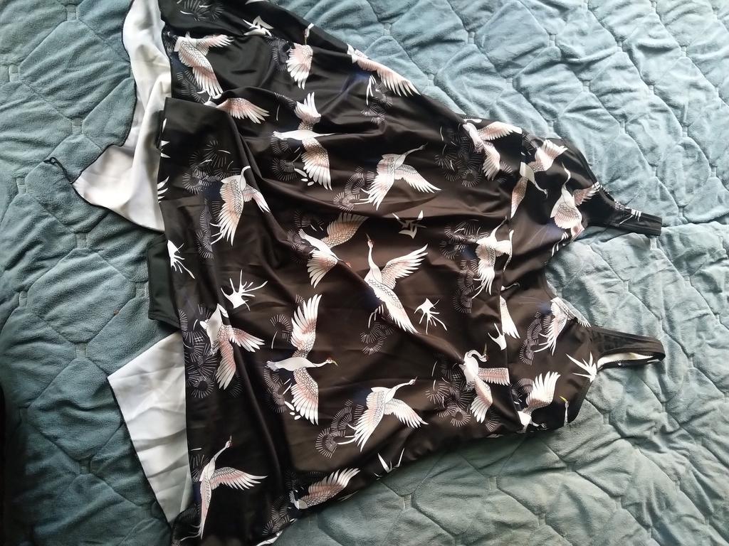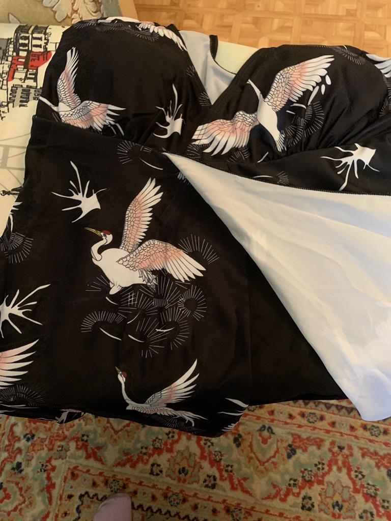 На свой полный 52, заказала 2xl.На грудь,2 размера,чашки очень обтянули,но я ушила наверху,соединила (на фото это видно),и стало всё отлично,грудь приподнялась!Качество,пошив, расцветка-всё на Ура!Имею живот, всё скрылось в этом купальнике (как,и у большинства женщин,с животиками),очень удачный вариант фасона!Да,спереди птички вверх ногами,(взади, кстати,в правильном расположении они),но меня,лично,это ни как не волнует!Если,на мой 52 размер взять 3xl,то тоже будет хорошо сидеть,на чуть-чуть посвободнее, что-ли...,но не на много больше,чем в этом размере.Я довольна,жду тепла,чтобы его выгулить!Рекомендую однозначно!Спасибо производителю большое -прибольшое!