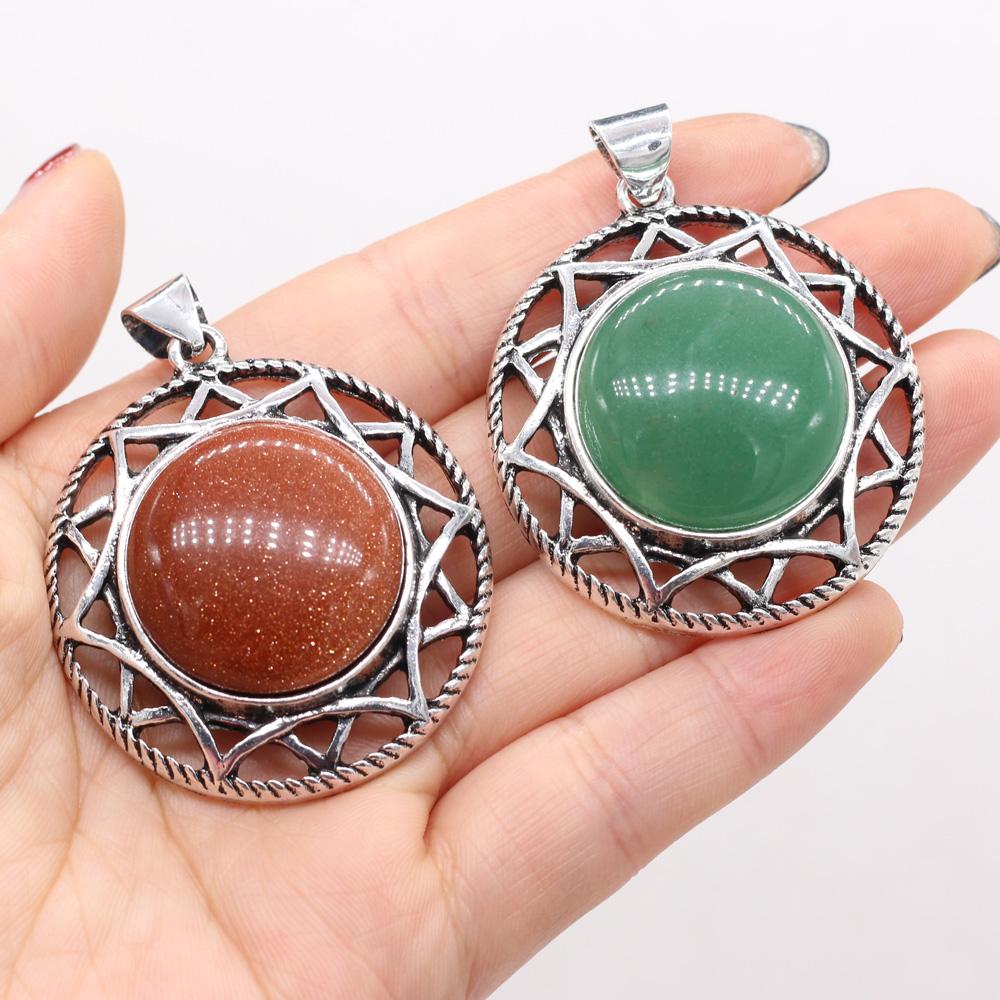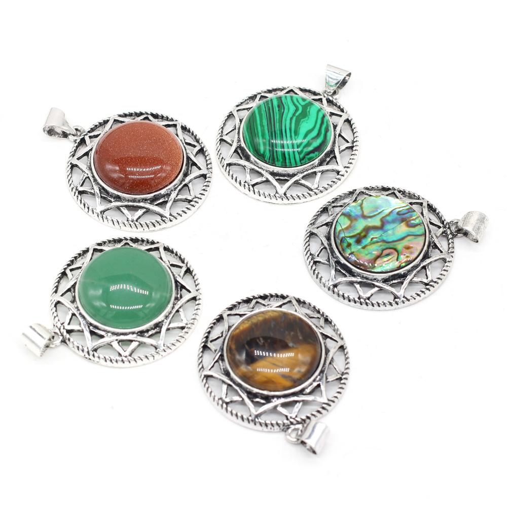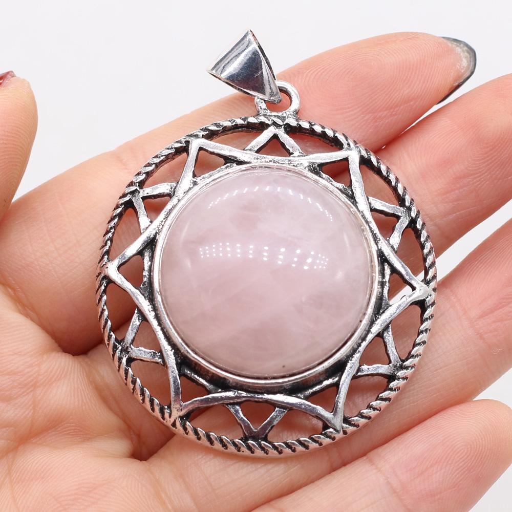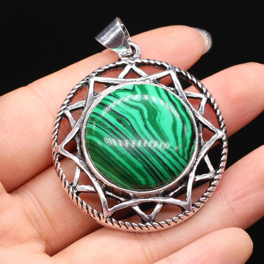 Кулон из натурального камня, розовый кварц/малахит, круглый кружевной кулон для изготовления ювелирных изделий, ожерелье, браслет, аксессуар
