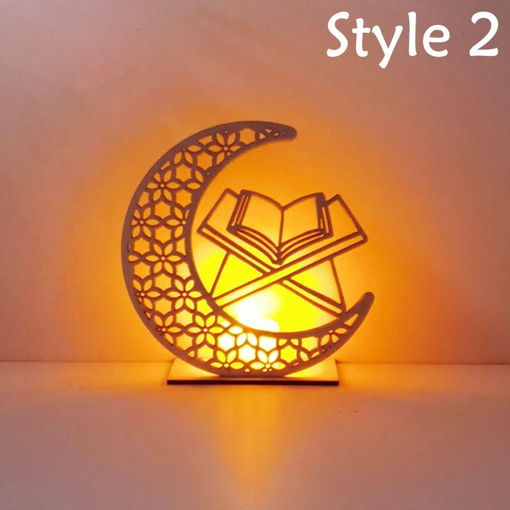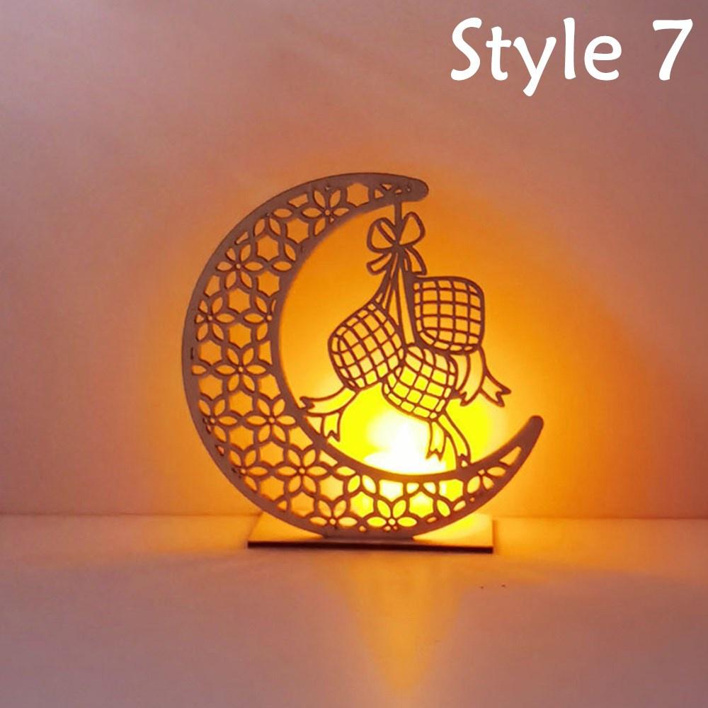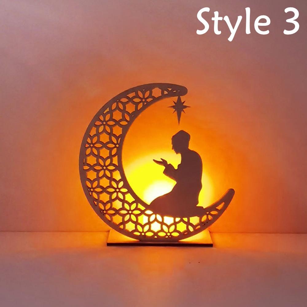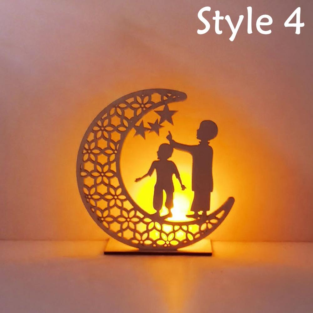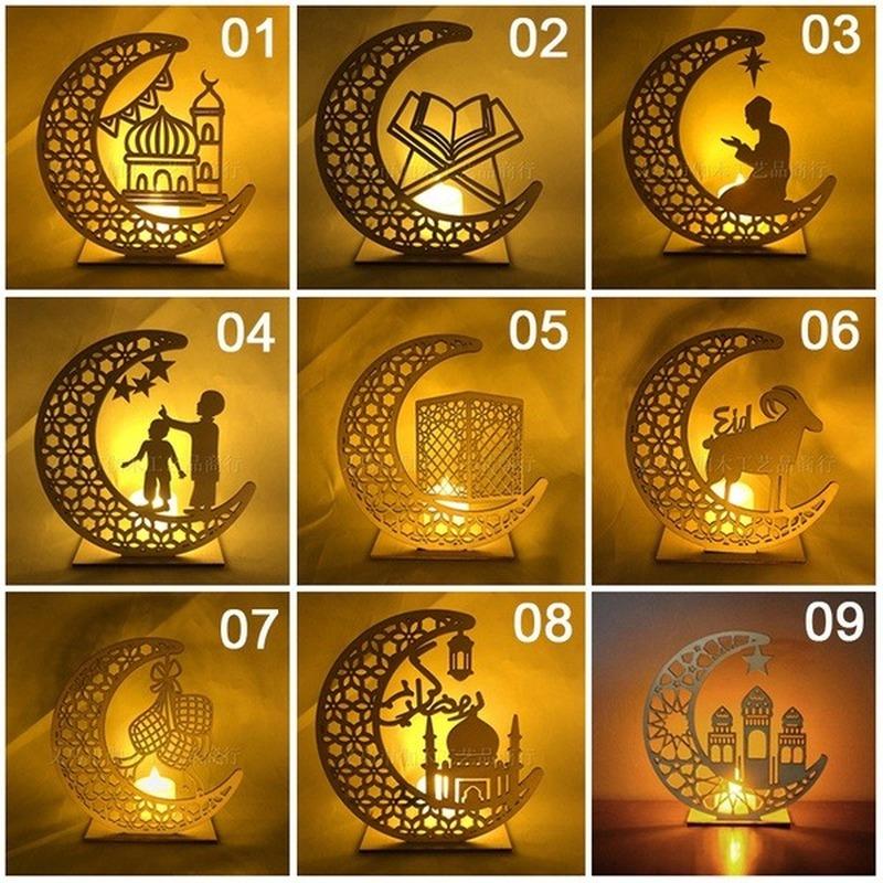 Украшения для Рамадана DIY Деревянная Луна Светодиодная Свеча Лампа Мусульманский Ислам Ид Мубарак Ремесла Украшения Свет