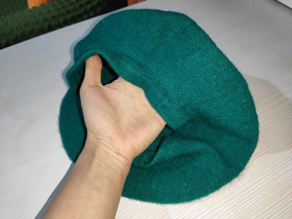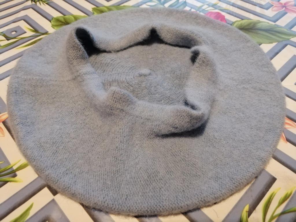 Мягкий берет серого цвета. Изготовлен из футерованного трикотажа (то есть, после вязки берет начесан и завалян). Берет не очень толстый и не очень плотный, достаточно пластичный за счёт вязки. Хорошо подойдёт на осень-весну. Берет имеет кашпене. Кашпене двойное и приваляное, за счёт этого уплотнения края кашпене не будет растягиваться в процессе носки. Носить можно и заправив, и выправив кашпене - в обоих случаях берет сидит на голове хорошо. Покупкой очень довольна, этот берет хорошо впишется в мой гардероб. Продавцу и Джум спасибо.