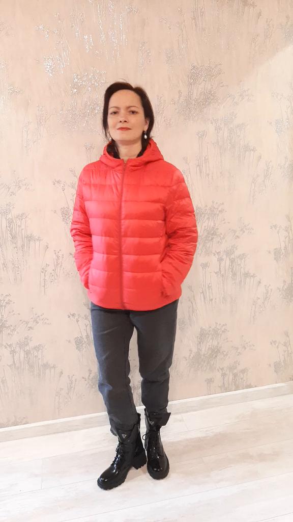 Получила курточку,(как я и думала и хотела.С размером угадала,заказала 4xl-на российский 48,просторно,можно кофту под низ одеть.Сняла 1 звезду за несоответствие цвета,который заказала.Ждала лазурный,а пришла светло-зелёная.А так для своих денег,курточка классная,невесомая.После того как выгуляю её,добавлю греет она или нет.Вообще продавца рекомендую,была в пути чуть меньше месяца,как раз пришла к началу потепления в Сибири.Спасибо Джуму.Добавила звезду(курточка тонкая,но теплая)-2-+5,отлично.