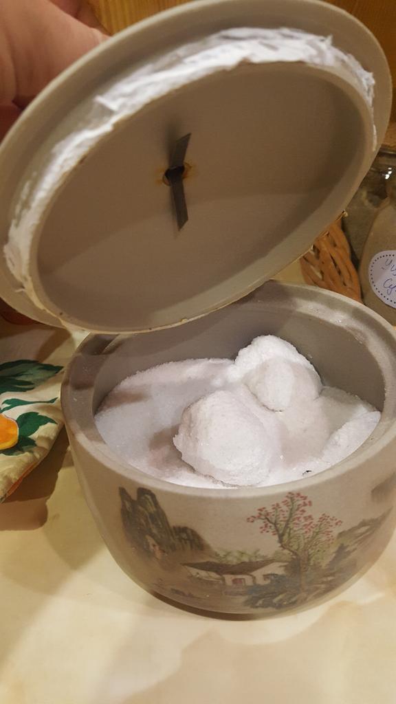 Интересная баночка. На сайте - беж, по факту серая (даже ближе к темно-серому). Внутри на крышке уплотнительная липкая лента, но мы оторвали - нам не надо! По моему мнению: дороговата, но необычная!