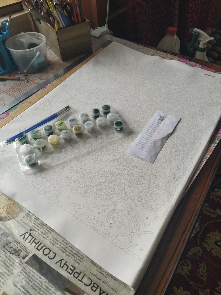 Получила холст,краски и кисточки - хорошо ! А где образец картины ,которая должна получиться после каскрашивания ? Ляпать наобум красками ,авось попаду куда надо? Это невозможно. Обязательно должен быть образец , даже не по номерам красок ,но просто картинка какая должна быть! Но лучше бы и по номерам красок... иногда такую присылают и это здорово.Далеко не всегда изготовители таких холстов правильно определяют цвет того или иного фрагмента на холсте....