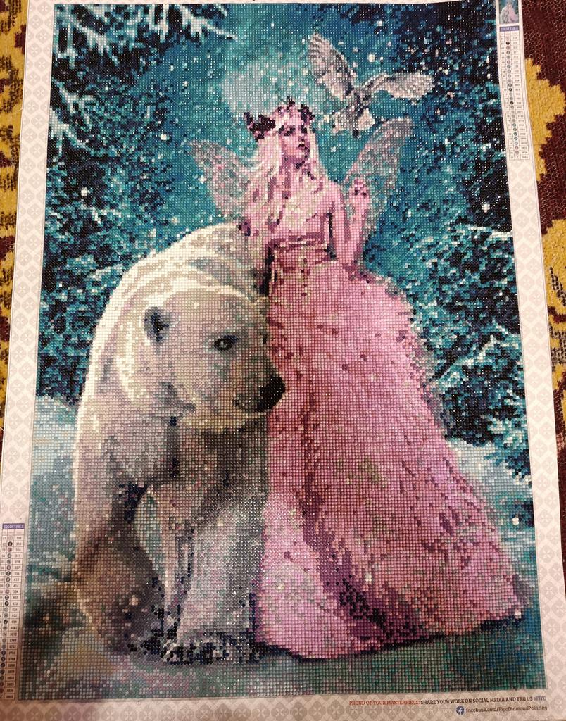 Заказываю вторую работу у этого продавца. Что можно сказать? Первая, конечно, была практически идеальной, на твердую 5. Эта картина пришла в более плохом состоянии.Страз хватает, продавец положил все, что нужно.Но сама картина имеет заломы, которые ничем уже не исправишь, соответственно это видно будет на работе.Помялась она сильнее первой, к сожалению( Поэтому ставлю 4. Готовая работа снизу.Немного отличается от картинки, почему цвет тела такой же, как платье? Полный бред.Осталась разачарована.