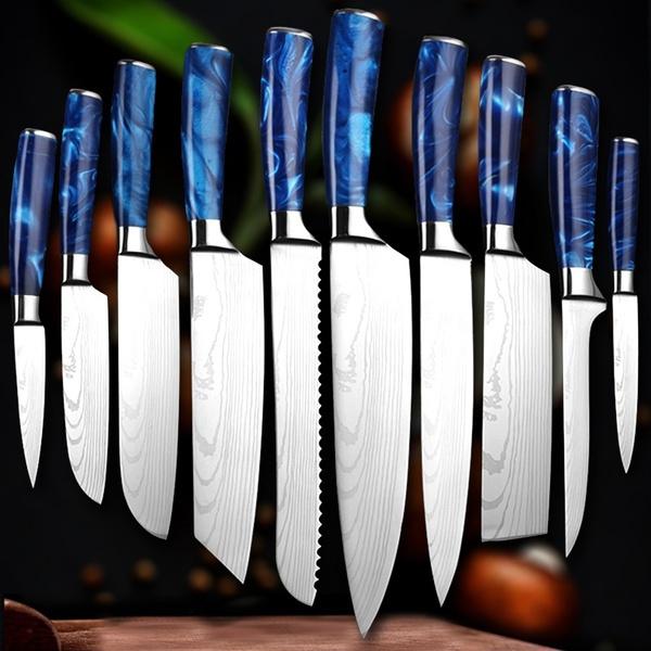 Ножи из нержавеющей стали, набор из 10 шт., имитация дамасского узора, кухонные ножи Сантоку, ножи для нарезки Кливер с чехлами для ножей