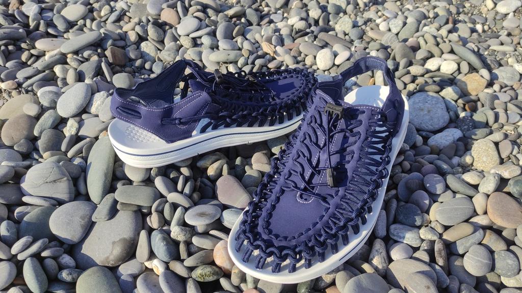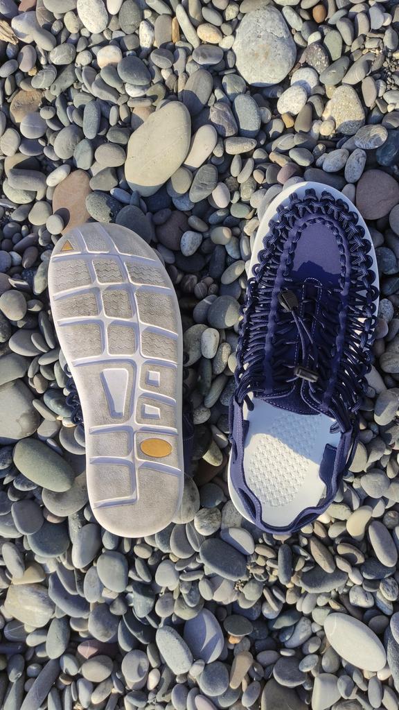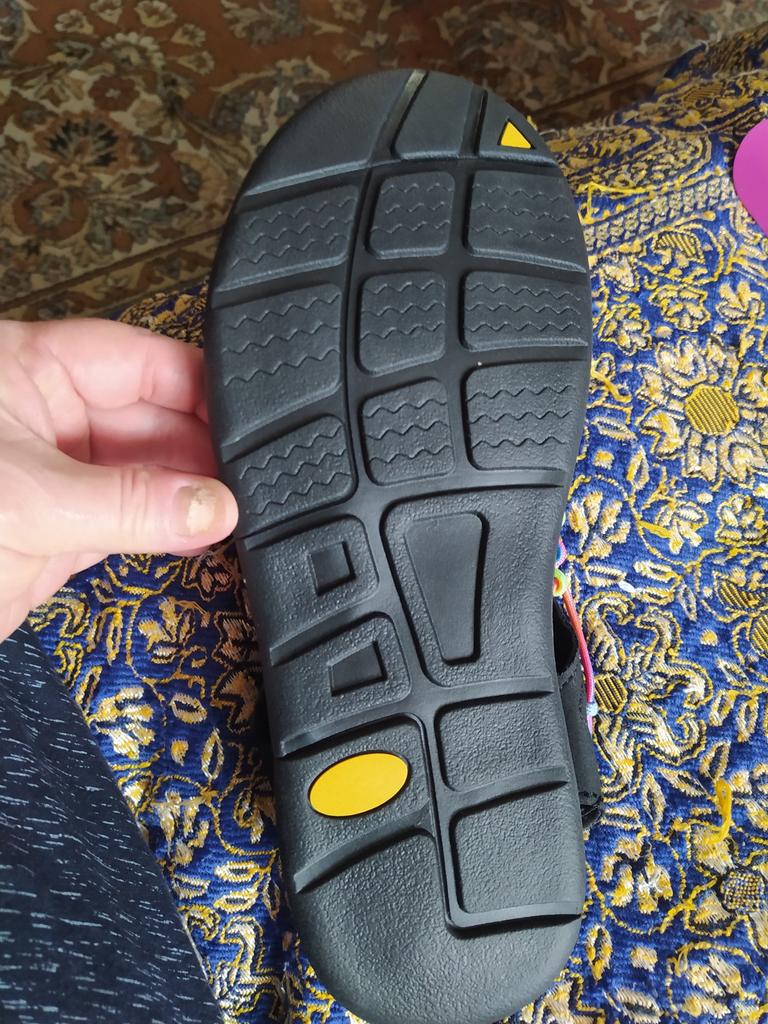 Сандалии хоть и мужские, но купила себе. Малость великоваты в длинну, но что хуже велики в ширину, объем ноги должен быть большим. Похожи на лапти. 😁 Все из резинок. Но! Если до этого я неоднократно покупала обувь из сплетённых резинок, то у этой обуви была очень легкая подошва, здесь подошва тяжелая и при ходьбе это ощутимо, резинки растягиваются и шлепают по пяткам. Если будут покупать женщины, они должны учесть, что сандалии на широкую ногу, моя нога там болтается.