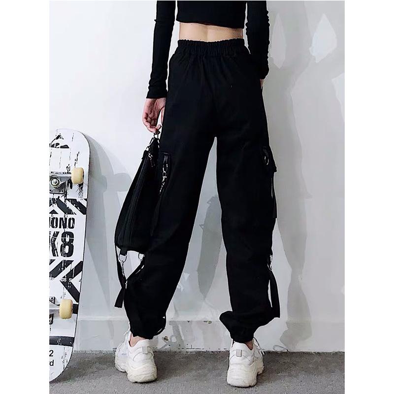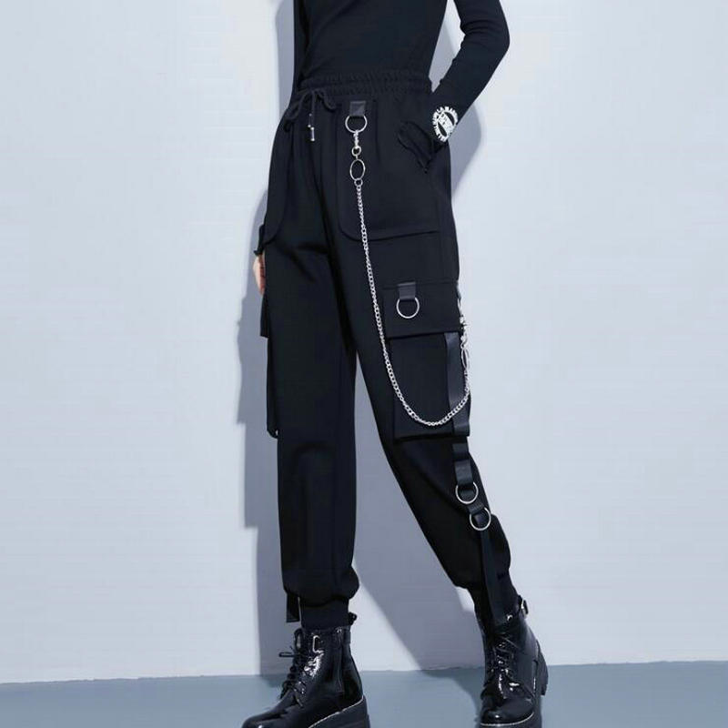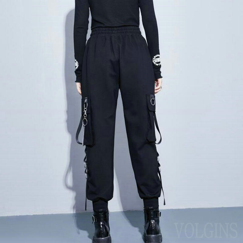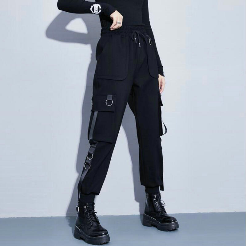 Уличная одежда Брюки-карго Женские повседневные бегуны Черные свободные женские брюки с высокой талией Брюки в корейском стиле