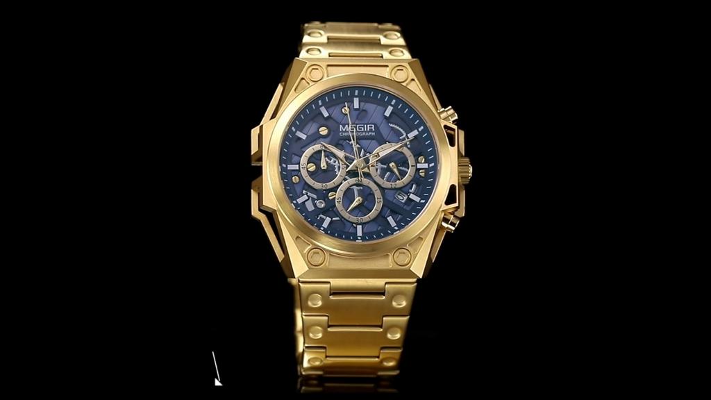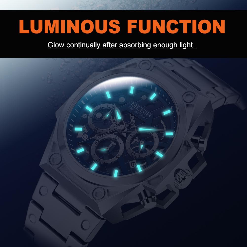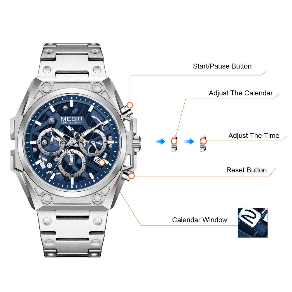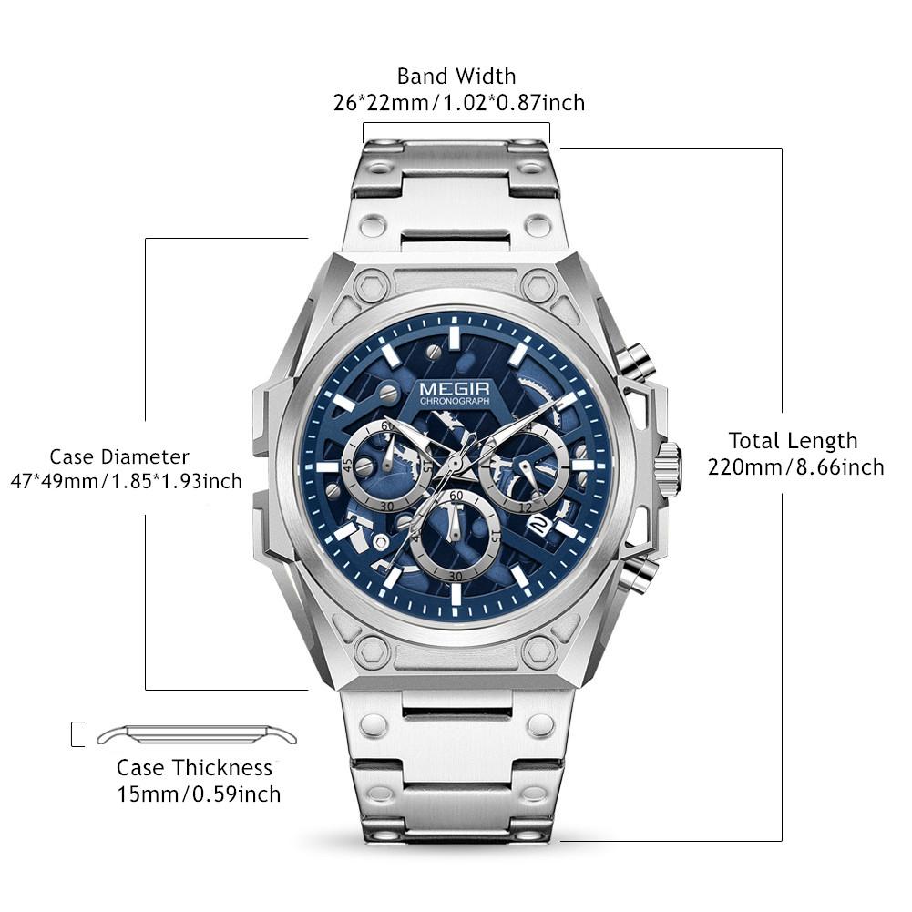 Megir Мужские кварцевые наручные часы креативного дизайна синего цвета из нержавеющей стали