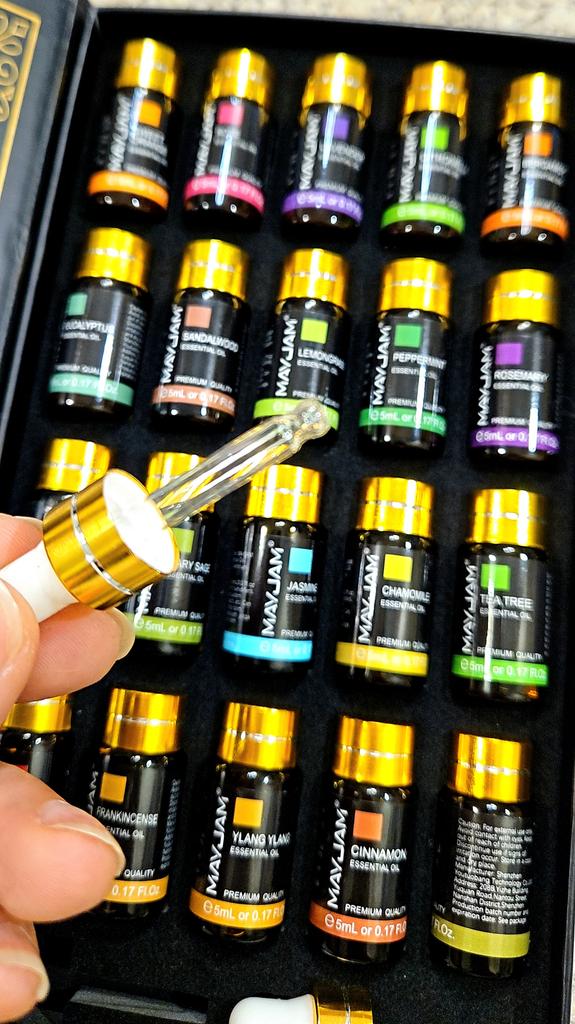 Подарочный набор эфирных масел MAYJAM включает 20 различных масел, предназначенных для ароматерапии. Эти масла могут использоваться в диффузорах для создания расслабляющей атмосферы во время спа-процедур, массажа или занятий йогой.