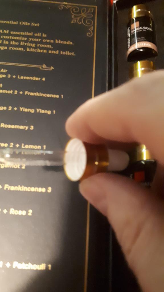 Заказ пришёл очень быстро, за 10 дней. Доставили курьером прямо домой. Коробка без повреждений, всё в комплекте как в описании. Коробочка очень симпатичная, с магнитным замком. Масла ароматные. Ёмкость у пузырьков маловата, но как пробник, что бы понять какой запах нравится самое то. Потом то, что понравилось, можно купить отдельно в большой бутылочке. В коробке краткая инструкция с описанием каждого масла. На крышке коробки изнутри некоторые рецепты по составлению комбинированных ароматов. Всё инструкции на английском (хорошо не на китайском). Кому очень лениво переводить, можно текст сфоткать , распознать и перевести в автопереводчике. Товар понравился. Продавцу спасибо.