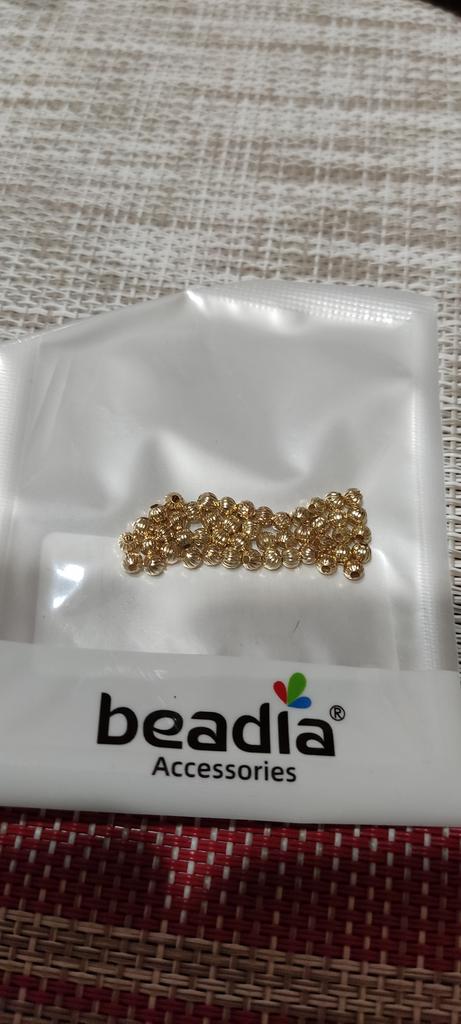 Красивые металлические бусины цвета золота КС, диаметром 3мм, пришли за четыре недели со дня заказа в количестве 47 штук вместо пятидесяти. Пакет запаян, повреждений нет. Отверстие для тросика - 1мм.