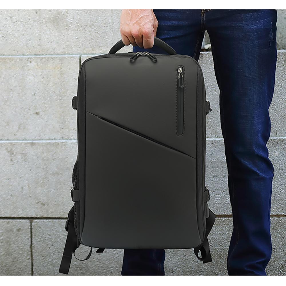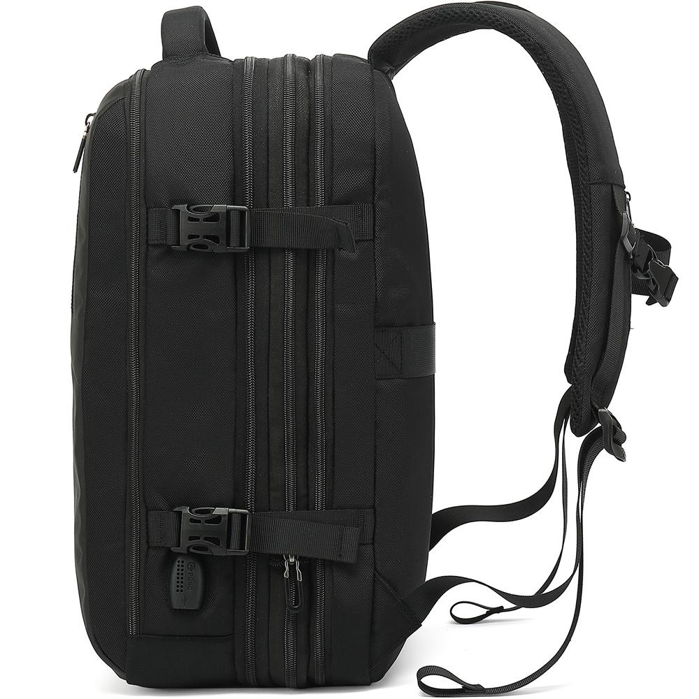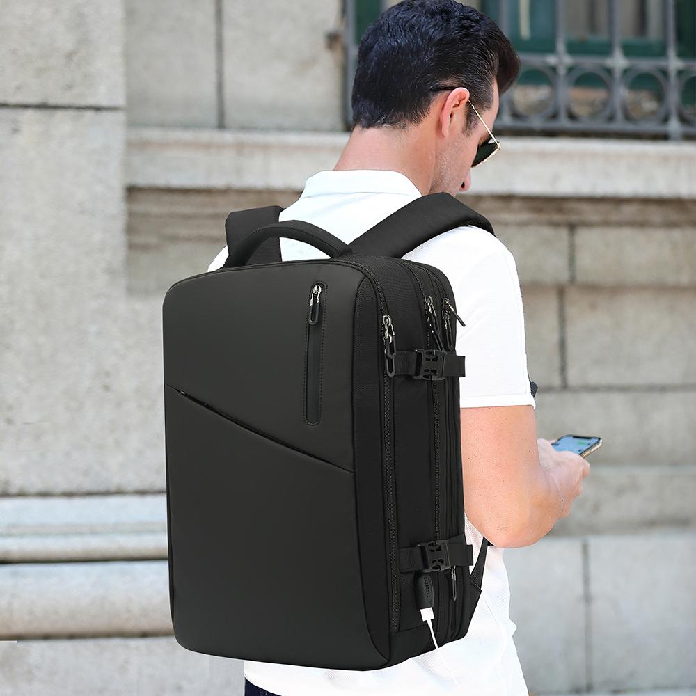 Мужской рюкзак POSO 17,3-дюймовый бизнес-рюкзак для ноутбука / открытый на 180 ° / RFID-экранирование / расширяемый / USB-зарядка водонепроницаемый большой емкости черный PS-656
