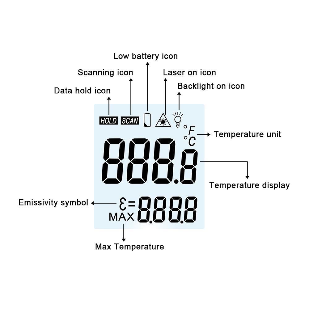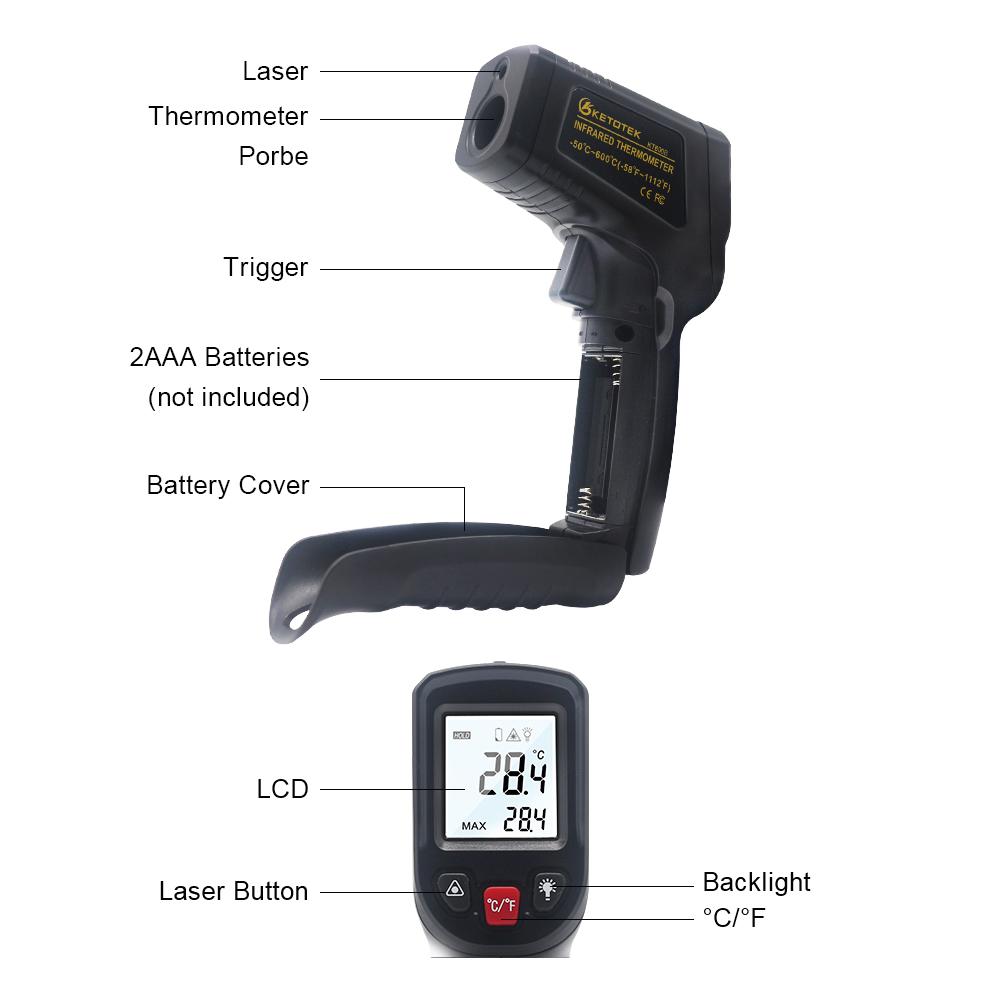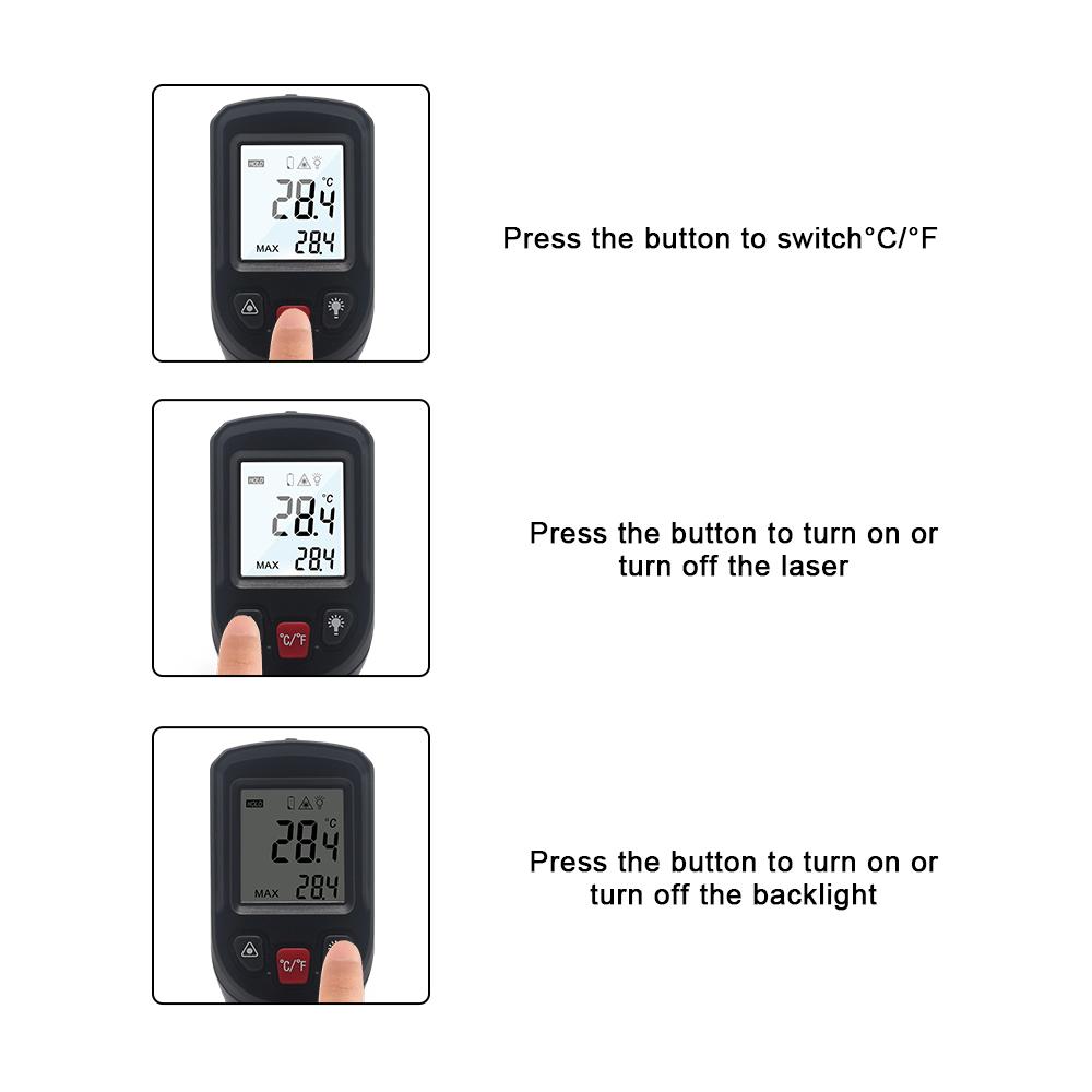 Цифровой инфракрасный термометр Бесконтактный лазерный термометр ИК ЖК-дисплей Измеритель температуры Пистолет-пирометр Приборы для измерения температуры