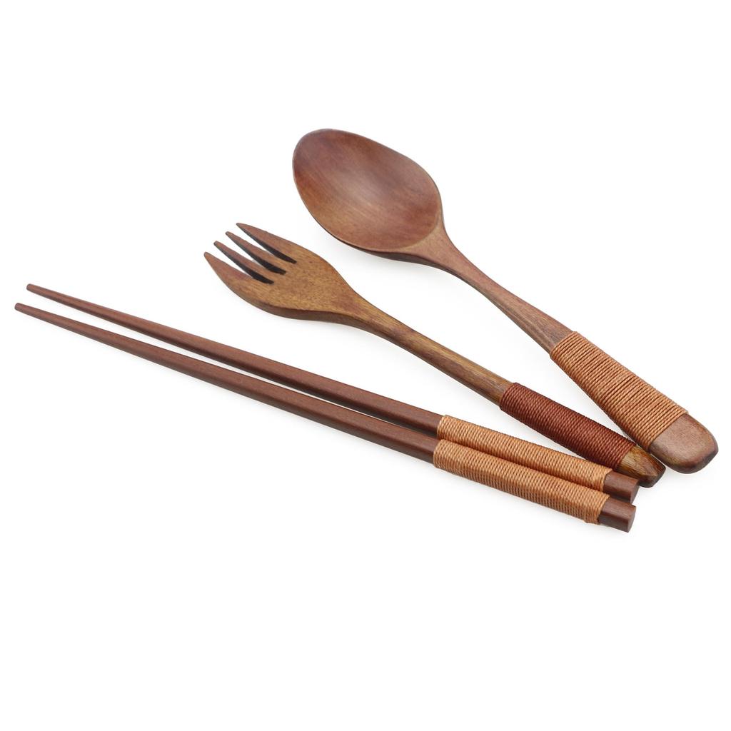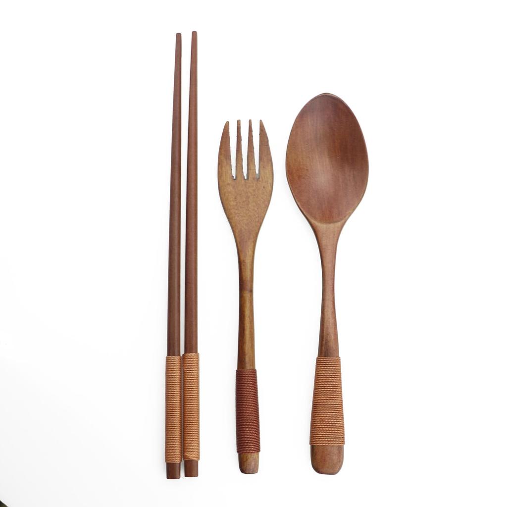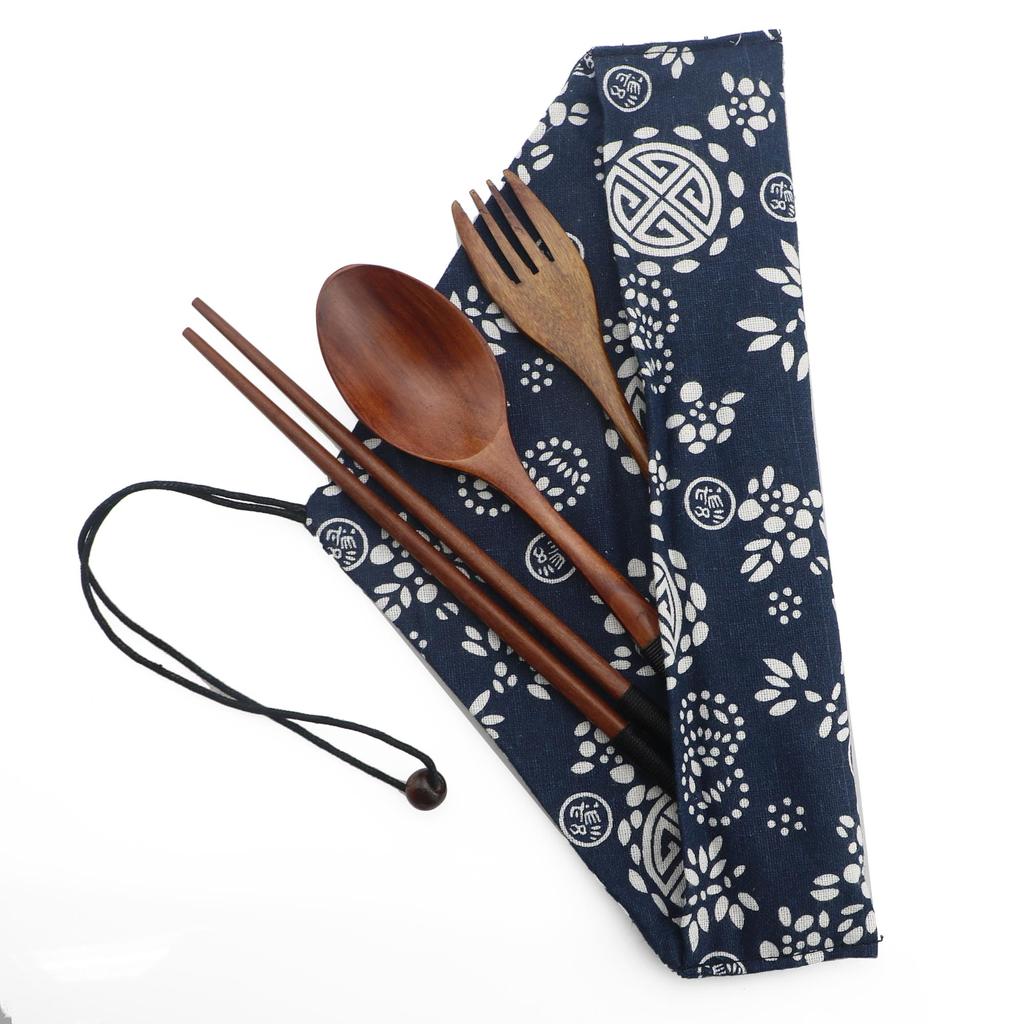 Японский деревянный бамбуковый портативный набор столовых приборов Посуда Деревянные вилки Наборы столовых приборов Дорожная посуда с тканевой сумкой Сумка для улицы Новый подарок