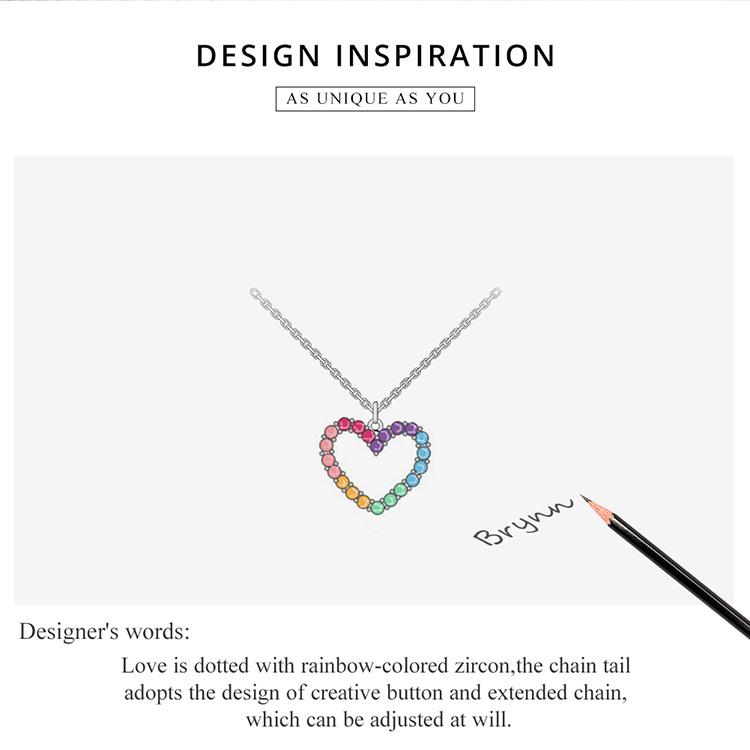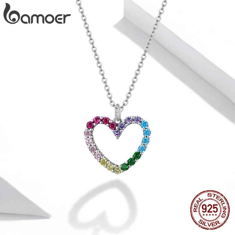 BAMOER Стерлингового Серебра 925 пробы Радужный Красочный Сердце Узор Любовь Ослепительный Циркон Ожерелье Звено Цепи для Женщин Ювелирные Изделия