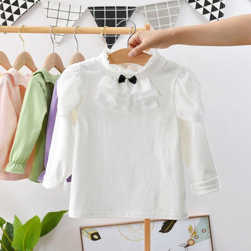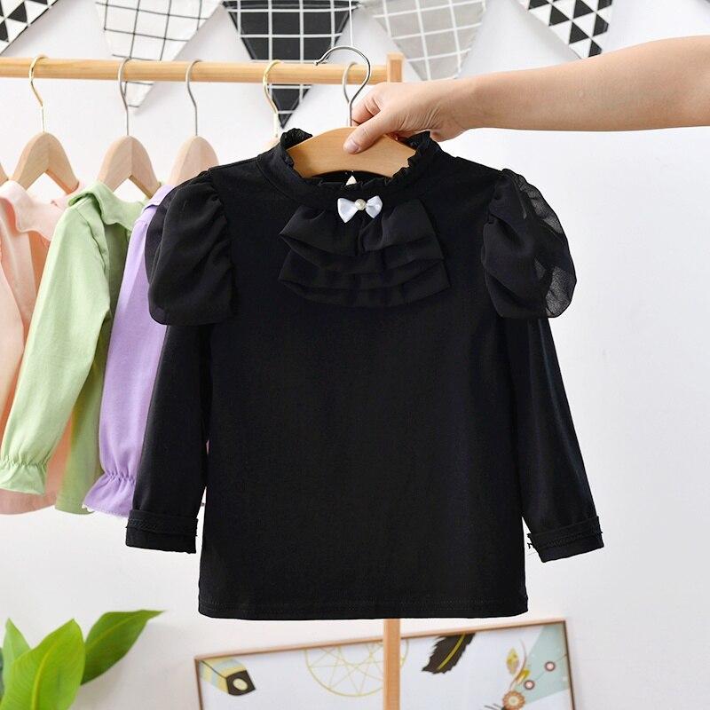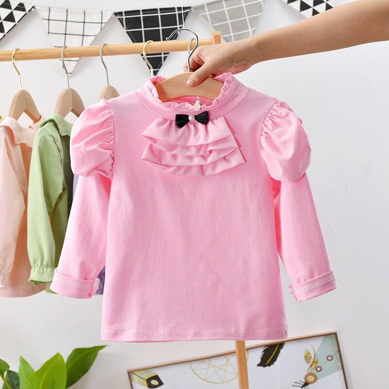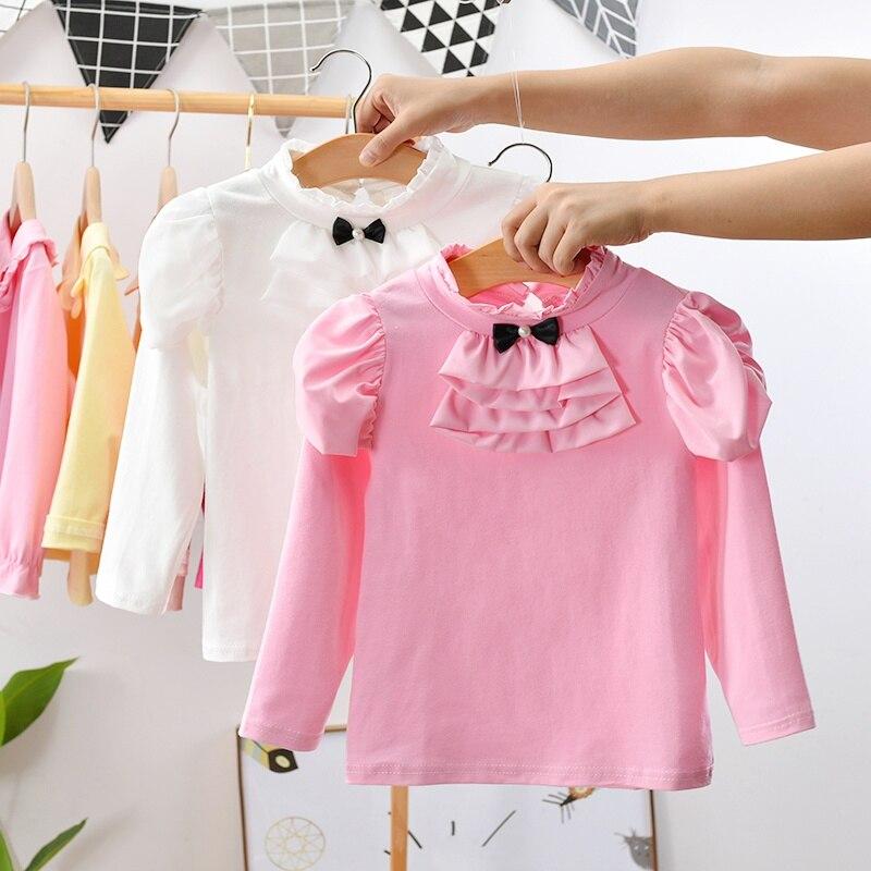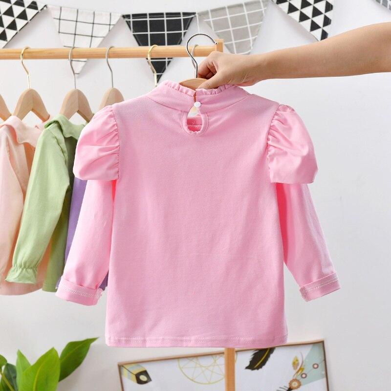 Детская осенняя милая однотонная хлопковая повседневная футболка с высоким воротником и длинными рукавами