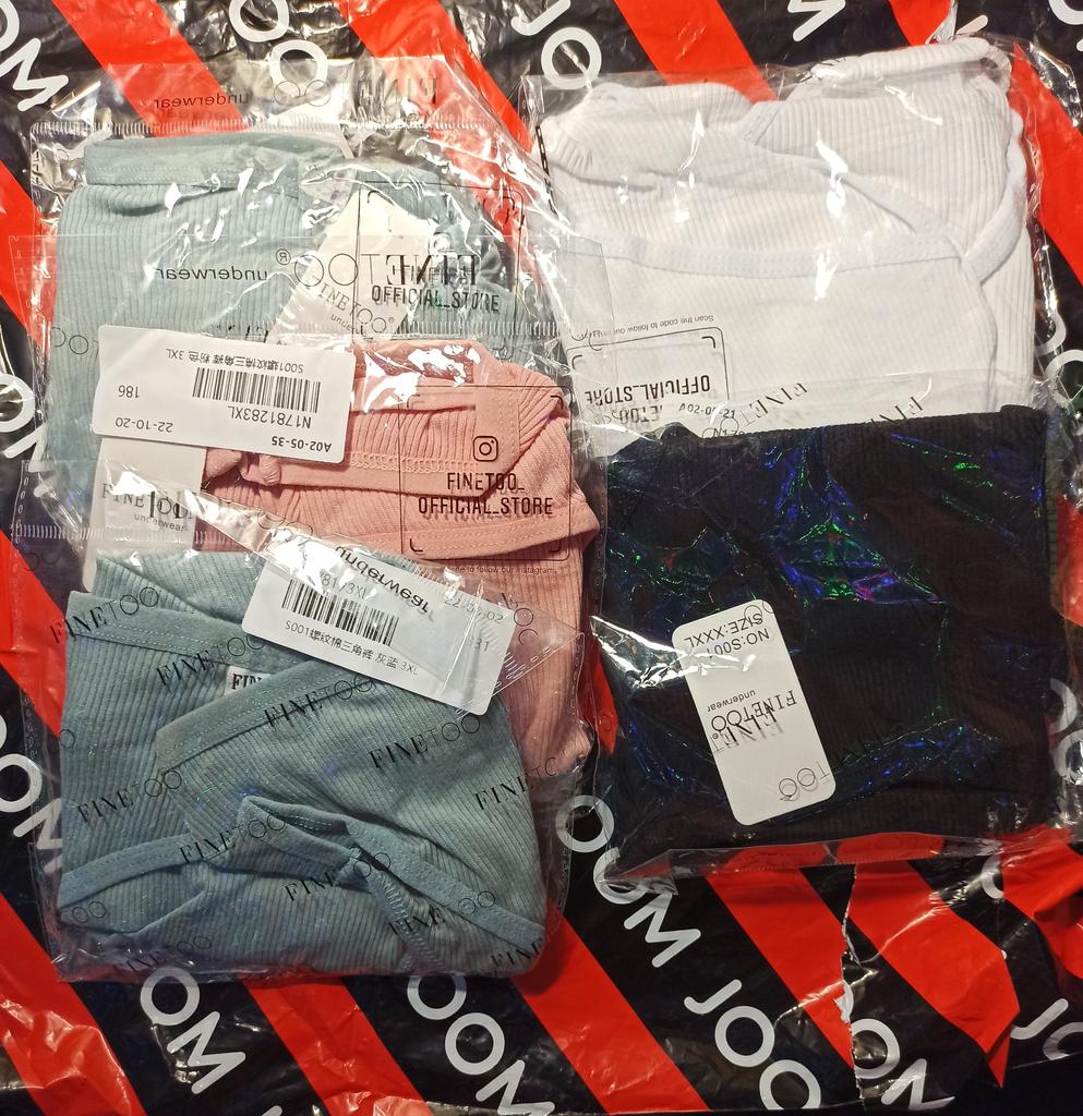 Трусики от фирмы FINETOO. Заказ шёл до СПб 73 дня. Думала,что уже и не дождусь. Заказала набор из 5 штук 3 XXL. Комплект пришел в полном порядке. Две пары черных, одни белые, одни розовые, одни соответствует. Заказала чуть больше чем ношу, по отзывам. Сели хорошо. Не сваливаются и не давят. Резинки нет. Ниже пупка. Материал похож на очень тонкий хлопок, приятные к телу. Трусики не просвечивают. Все швы ровные. Брака нет. Отличный комплект на каждый день. Заказываю не первый раз данную фирму разных фасонов. Все заказы приходят отличного качества. Ещё не разу не разочаровывали. Буду заказывать ещё. Большое спасибо продавцу и Joom!