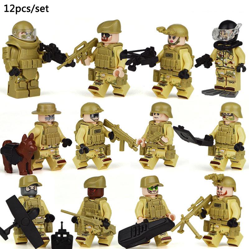 12 шт. / Компл. Военный спецназ солдаты кирпичи фигурки пистолеты команда строительные блоки модель игрушки