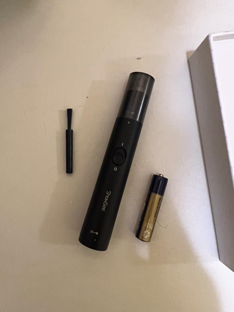 Работает от одной мизинчиковой батареи. Включается путём поворота хромированного кольца с надписями Off, On и LIGHT. Удаляет волоса, но не чисто. Подсветка не работает.