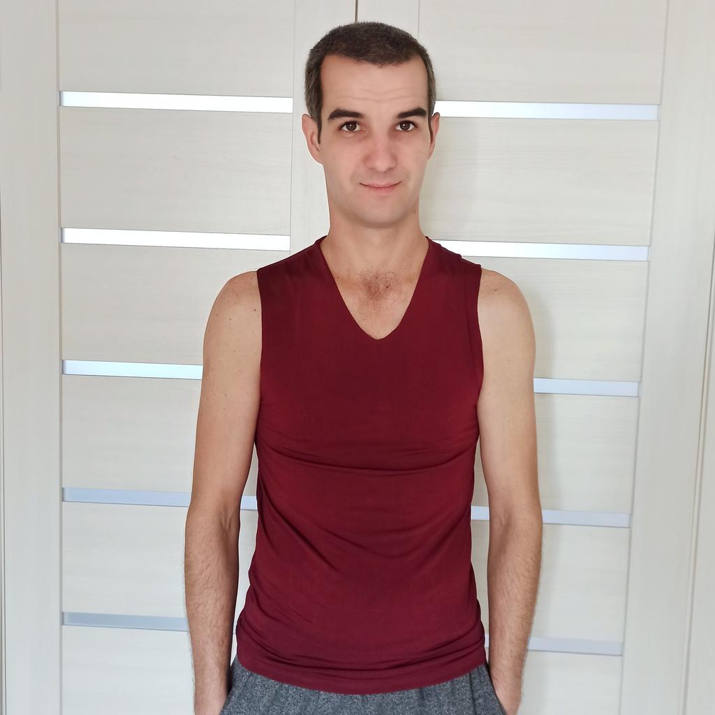 Спортивная майка. Мужская майка, которая лучше смотрится в качестве женской! Спортивный вариант майки из эластичной ткани, состав не указан, по ощущениям это синтетика с большой долей спандекса. Майка летняя, лёгкая, ткань хорошо тянется и приятная к телу. Рукава и горловина не обработаны, просто аккуратный срез, на плечах наружный шов, а низ майки подшит с поворотом. Качество пошива хорошее, недостатков я не обнаружила. Размерный ряд широкий, от L до XXXXXL. Я заказала размер XXL, как и заявлено в размерной таблице на объём груди 90 см подошёл отлично. Длина на рост 182 см хорошая. Доставка заняла 20 дней до почтового отделения. Упакована майка хорошо. В общем, классная спортивная майка с V-образной горловиной, комфортная и приятная к телу. Мужская она, или женская, пусть каждый решает для себя сам! Я оставлю майку себе, потому что мне она понравилась больше, чем мужу.