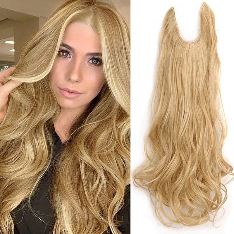 MISS WIG 24 "Невидимая проволока без зажимов для наращивания волос, секретные накладные волосы из рыбьей лески, синтетические прямые волнистые наращивание волос