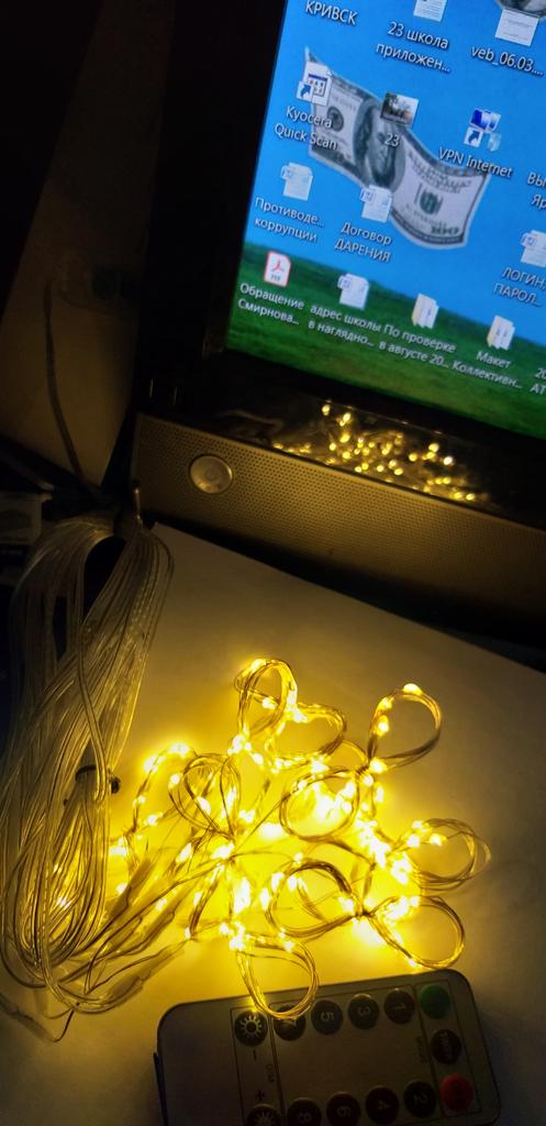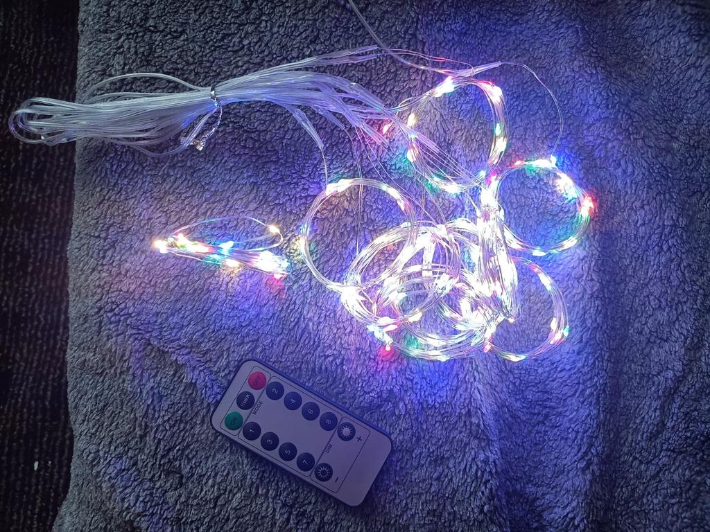 На металлизированной прозрачной проволоке прикрепляется 10 нитей, и эту "гирлянду" надо присоединить к компу или планшетнику через USB-порт и тогда она засветит 😉 светодиодами. Товар был хорошо упакован, но доставлен с повреждением: у пульта дистанционного управления надломлено место, куда надо вставить круглую батарейку 🤬, и это огорчило 😔... Кроме того, у нас говорят, "дорогА ложка к обеду"... А тут заказ был сделан 13 ноября 2022 года и ожидался к Нашему Новому году, что вполне логично, но напрасно🤔. Доставка состоялась практически через два месяца 09 января 2023 года🙈!!! До 22.12.22 г. заказ "путешествовал" по Китаю и в Россию попал только 22 декабря. Использовать этот занавес можно только в закрытом помещении!!! Следовательно, посмотрим в конце только наступающего года😉, как эта красота будет смотреться на окне, если ещё служба поддержки покупателей исправит ситуацию с пультом дистанционного управления. ДОПОЛНЯЮ: служба поддержки покупателей приняла решение о возврате денег. Большое спасибо 💐