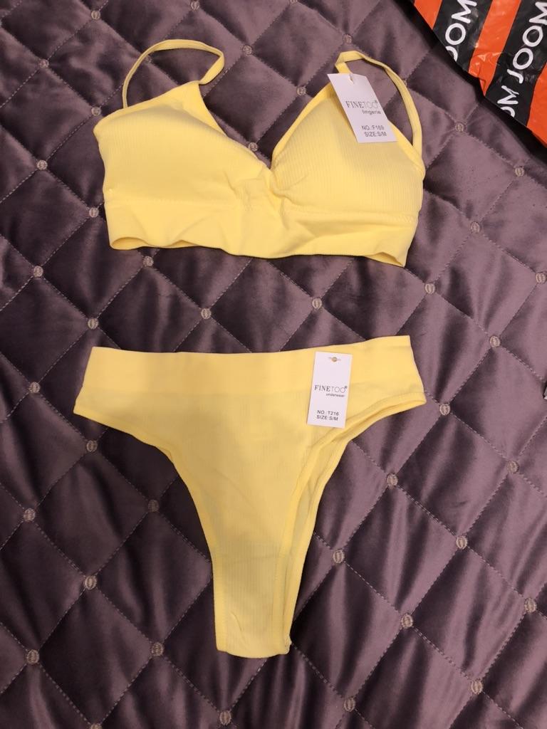 🌞 Всем солнечный привет! 👙 Получила долгожданный комплект белья от магазина FINETOO. 💰 Цена со всеми скидками - 294 рубля. 📏📐 Размер: S-M на параметры 83-65-85см, р-р 40-42 (XS-S, 70-75В). Село довольно впритык, но белье мягкое - ничего никуда не впивается и нигде не давит. Хорошо тянется. Можно брать на размер больше, если Вы любите посвободнее. Я предпочитаю, чтобы бельё сидело плотно. 🧵 Качество пошива - приличное на свою сумму. Не могу сказать, что безупречно, но вполне носибельно. Придраться можно к стыку выреза на лифе и особенно - к ластовице трусиков. В магазине такое резануло бы глаз, но и цена магазина в разы выше. Я звезду за это не снимаю, так как соотношение цена-качество меня устраивает. 👙 В топе есть съёмные вкладки. 👙 Резинки у белья эластичные, но широкие и плотные. За счёт этого поддержка груди очень хорошая. 👙 Комфортный фасон трусов. 👙 Фото делала на пляже: комплект легко сойдёт в качестве купальника. 👙 Не знаю, как долго будет служить, но пока я соотношением цена-качество вполне удовлетворена. 👍 Бельё к покупке с удовольствием рекомендую! 🛒🛍️ Желаю вам отличного настроения и приятного шоппинга с Джум!!!