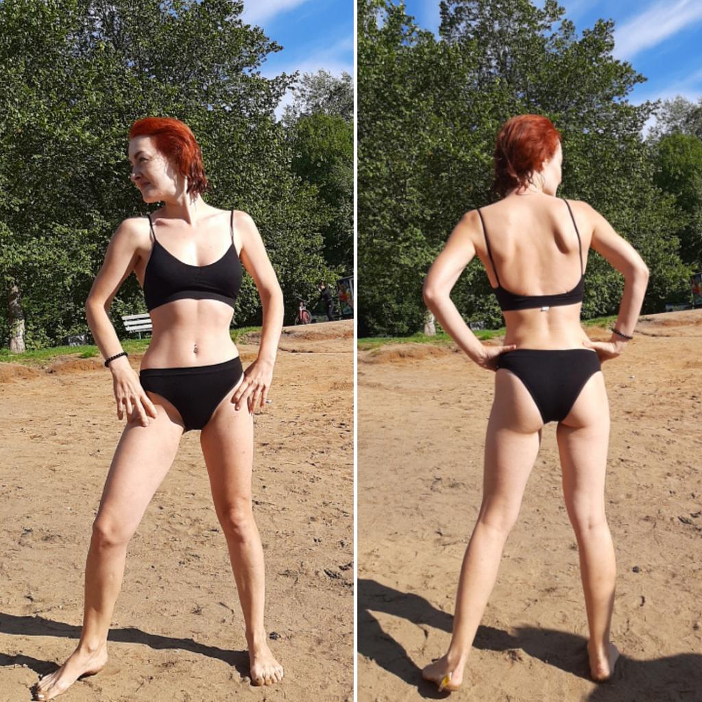 Заказала в двух цветах и двух вариантах размера, чтобы, так сказать, не в глаз, а в бровь!!! Желтый комплект тютелька в тютельку, как говорят))) удобный, тянется ни яркий, ни бледный. Чашки поролоновые плотные, создают небольшой объём. Итак, желтый 🍋 комплект вязала размера S/M. Мои параметры 85/65/90, обычно беру 42 рос размер, крайний размер 44, зависит от производителя. Он впритык, топ надевать немного некомфортно, но сидит хорошо, не стягивает, не давит. Трусы немного впиваются, хотелось бы хоть на полразмера больше. Посадка высокая, до пупа. Швы хорошие, ниток 2-3 торчат) Состав: 92% полиамид и 8% спандекс В трусах есть ластовица, похожа на хлопок, но не без синтетики. Вердикт ⚖️: носить можно, подойдёт строго до 42 размера. Для разнообразия и за небольшую цену все прекрасно! Про зелёный комплект в следующем отзыве)
