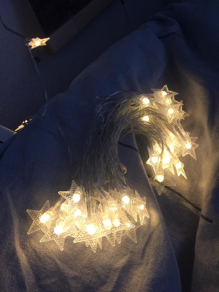 Отличная гирлянда. Светит хорошо. Звездочки целые. Нужно 3 батарейки)) очень порадовало)) как и ожидала)) еще там два режима. Может есть и третий, но я могу переключать только два 🤣 обычный свет. И мигающий)) довольна. Спасибо джум и продавцу 🙏🏻