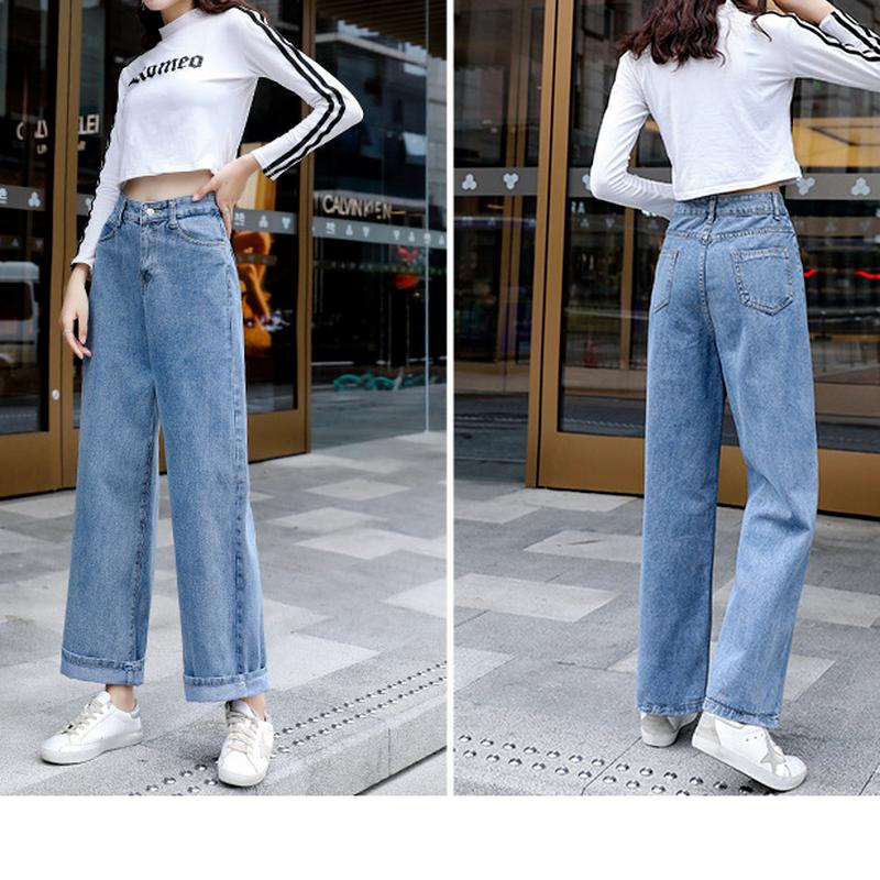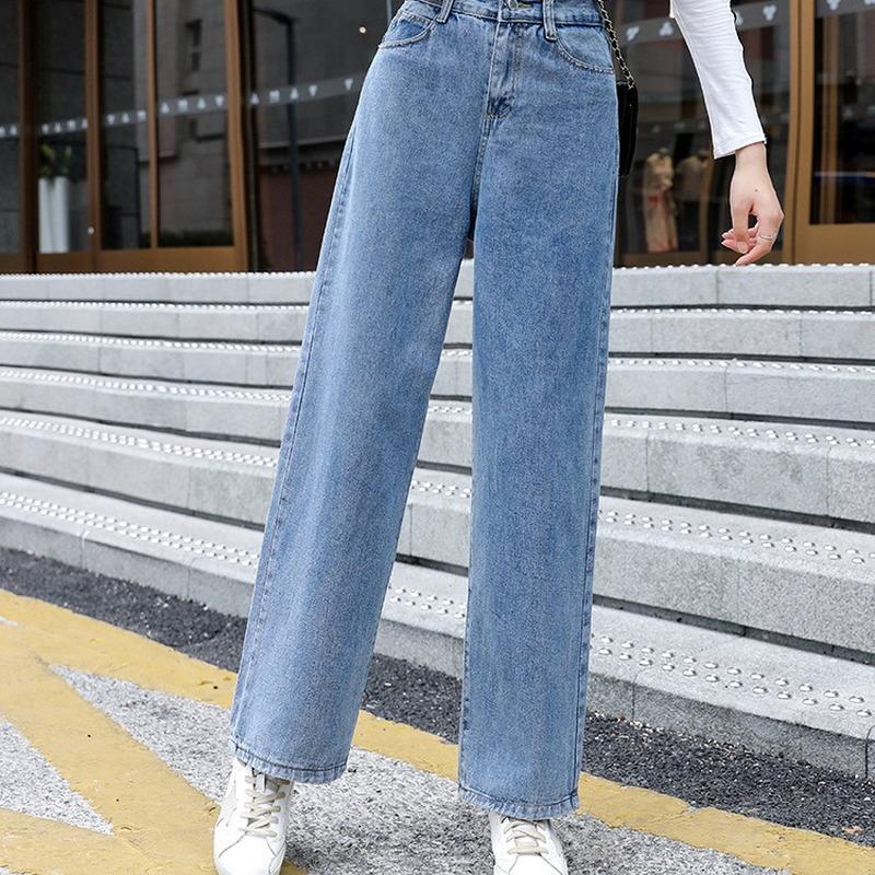 Женские джинсы с высокой талией, винтажные широкие джинсы, длинные женские свободные брюки, прямые брюки