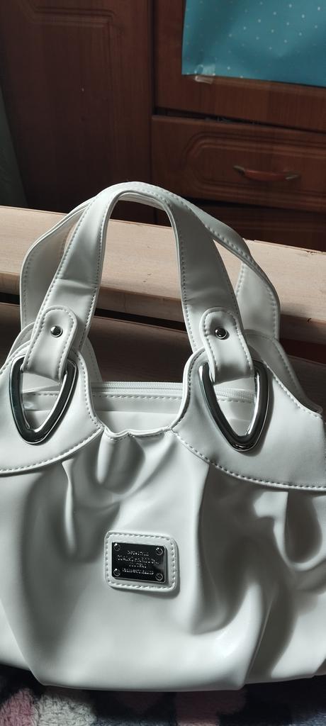 Сумочкой довольна. Большой средний отдел на молнии, в нём есть ещё три маленьких кармашка, один из них побольше и на молнии. Два больших отдела по бокам отлично закрываются на магнитных застежках, не надо "прицеливаться". Ручки хоть и широкие, но в руках держать удобно. И на локте повесить тоже. Цвет чисто белый ! Материал не натуральный, запаха нет, плотный, форму сумка👛 держит хорошо, но в тоже время она мягкая, вместительная!